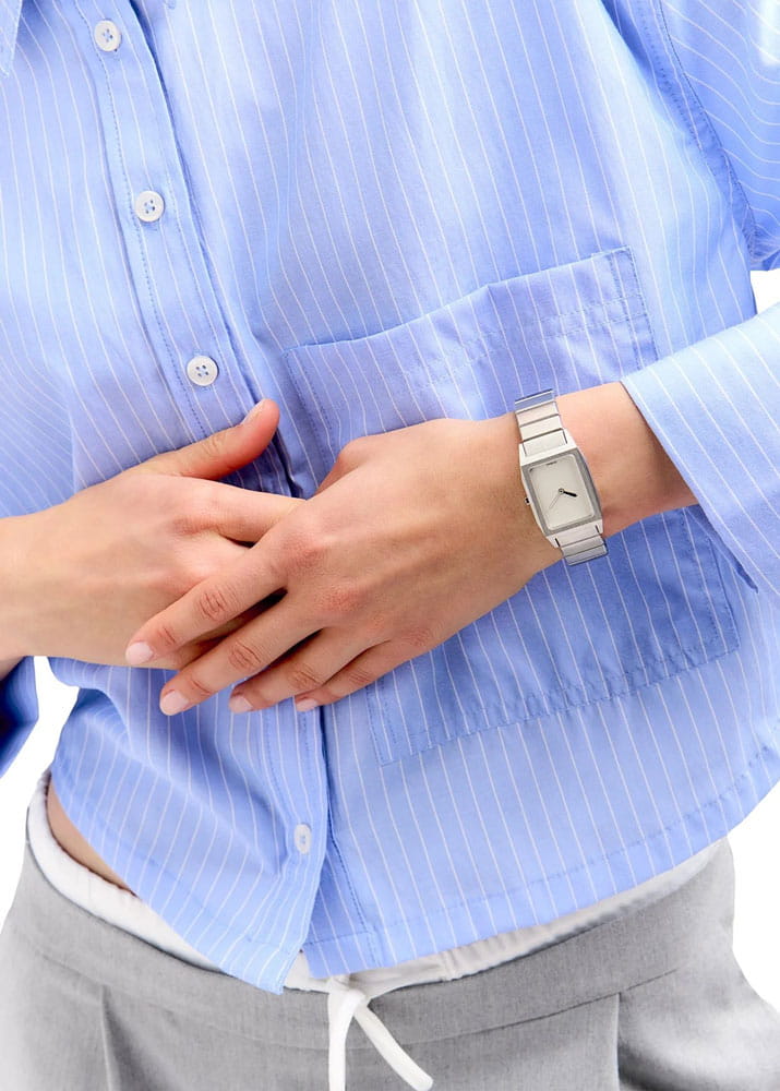 Часы D1 Milano Aura Studio 71 ARBU01 — это уникальные кварцевые часы, которые подчеркнут ваш изысканный стиль. Эти наручные часы с эффектным монохромным дизайном станут выразительным акцентом вашего образа. Изысканный корпус из стали 316L диаметром 23 мм придает часам современный и утонченный вид. Серебристый циферблат, выполненный по технологии Sunray, а серебристые стрелки создают стильный контраст, подчёркивая элегантность модели. Задняя крышка закреплена на 4-х винтах. Стальной браслет с застёжкой «бабочка»Застёжка "бабочка"Такой вид застёжки дополняется предохранителями, помогающими избежать случайного раскрытия браслета. Обладают изящным исполнением. обеспечивает надежность и комфорт в повседневном использовании. Сапфировое стеклоСапфировое стеклоПрочный и надёжный материал из кристалла сапфира синтетического происхождения, характеризующийся особой твёрдостью и устойчивостью к царапинам и повреждениям. с антибликовым покрытиемАнтибликовое покрытиеСлой оксида металла в 0,13-0,3 микрон, благодаря которому стекло часов не бликует и не отражает свет. Антибликовое покрытие уменьшает отражение света в 10 раз, обеспечивая отличную читаемость показателей циферблата. защищает циферблат, а водозащита до 50WR делает эти часы практичным выбором для любых условий. Благодаря калибру Miyota 1L22 часы отличается точностью и надежностью. Эти итальянские часы представляют собой идеальное сочетание традиционного мастерства и инновационного подхода, воплощая в себе новый взгляд на классическую элегантность.