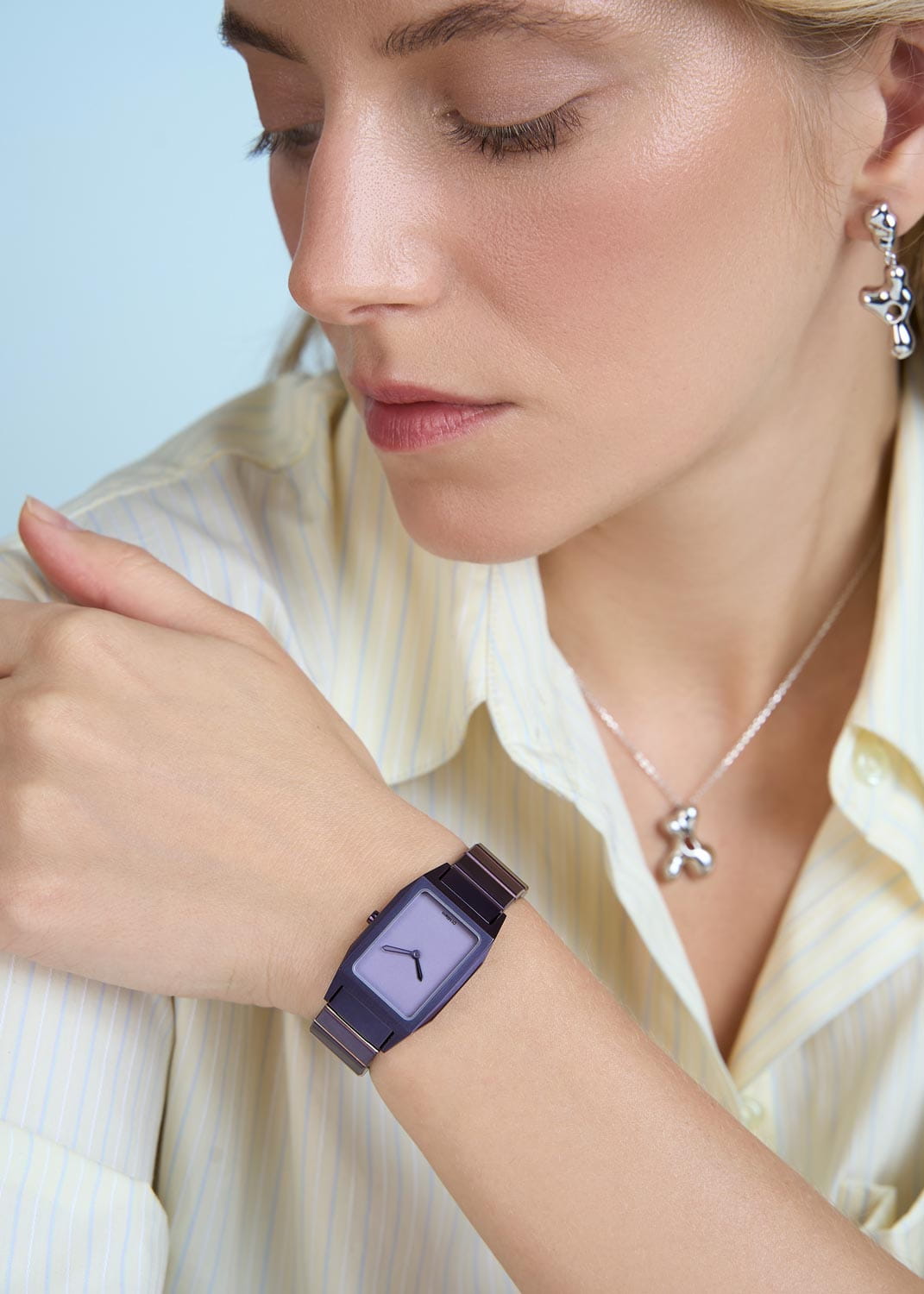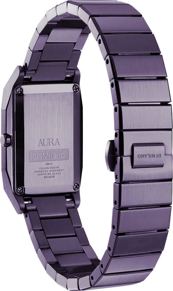 Часы D1 Milano Aura Studio 75 ARBU05 — это уникальные кварцевые часы, которые подчеркнут ваш изысканный стиль. Эти наручные часы с эффектным монохромным дизайном станут выразительным акцентом вашего образа. Изысканный корпус из стали 316L с PVD-покрытиемPVDУльтратонкое покрытие наносится в технике вакуумного напыления, сочетает в себе нитрид титана особой прочности со слоем золота или оксида хрома. Несёт в себе декоративную или защитную функцию. диаметром 23 мм придает часам современный и утонченный вид. Фиолетовый циферблат и фиолетовые стрелки создают стильный контраст, подчёркивая элегантность модели. Задняя крышка закреплена на 4-х винтах. Стальной браслет с PVD-покрытиемPVDУльтратонкое покрытие наносится в технике вакуумного напыления, сочетает в себе нитрид титана особой прочности со слоем золота или оксида хрома. Несёт в себе декоративную или защитную функцию. с застёжкой «бабочка»Застёжка "бабочка"Такой вид застёжки дополняется предохранителями, помогающими избежать случайного раскрытия браслета. Обладают изящным исполнением. обеспечивает надежность и комфорт в повседневном использовании. Сапфировое стеклоСапфировое стеклоПрочный и надёжный материал из кристалла сапфира синтетического происхождения, характеризующийся особой твёрдостью и устойчивостью к царапинам и повреждениям. с антибликовым покрытиемАнтибликовое покрытиеСлой оксида металла в 0,13-0,3 микрон, благодаря которому стекло часов не бликует и не отражает свет. Антибликовое покрытие уменьшает отражение света в 10 раз, обеспечивая отличную читаемость показателей циферблата. защищает циферблат, а водозащита до 50WR делает эти часы практичным выбором для любых условий. Благодаря калибру Miyota 1L22 часы отличается точностью и надежностью. Эти итальянские часы представляют собой идеальное сочетание традиционного мастерства и инновационного подхода, воплощая в себе новый взгляд на классическую элегантность.