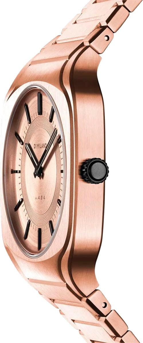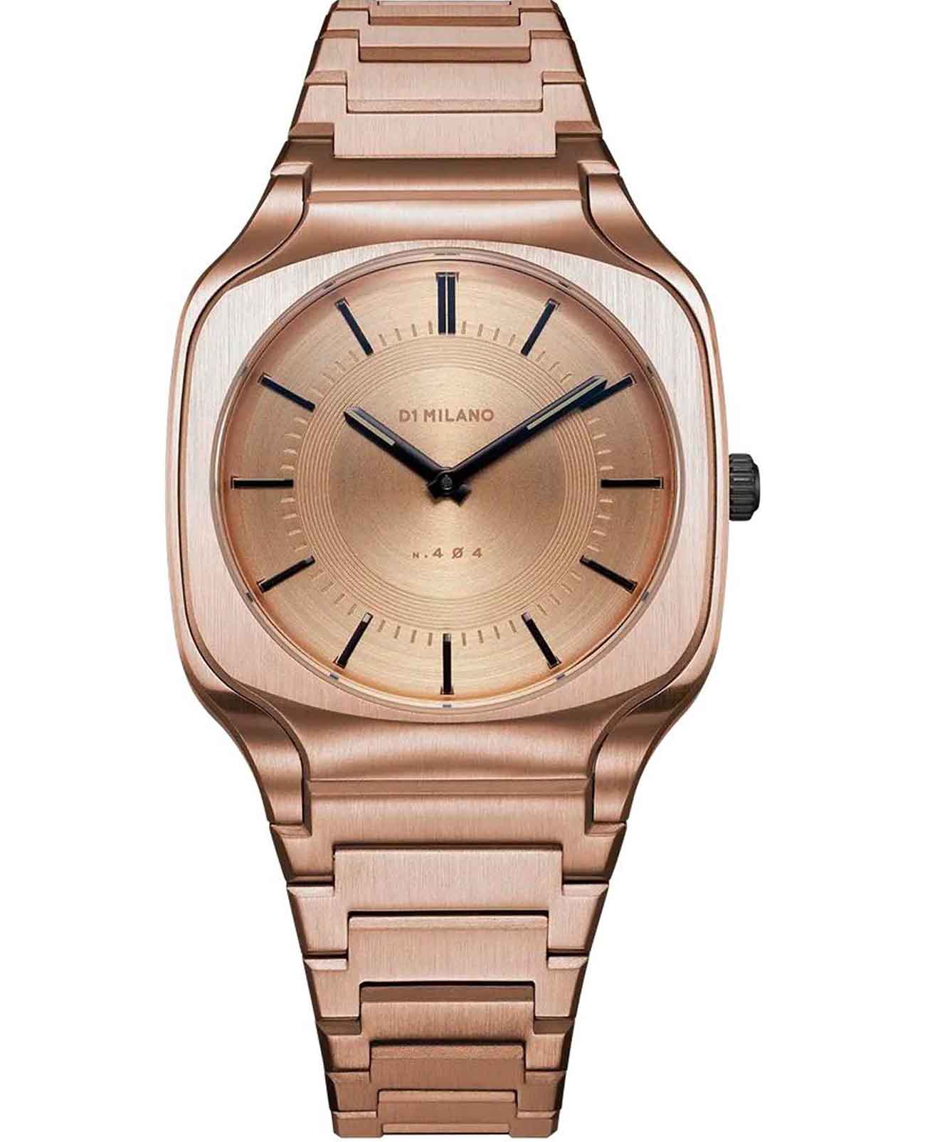 Часы D1 Milano SQBJ04 — это уникальные кварцевые часы, которые подчеркнут ваш изысканный стиль. Эти наручные часы с эффектным монохромным дизайном станут выразительным акцентом вашего образа. Квадратный корпус из стали с сатинированной отделкой, PVDPVDУльтратонкое покрытие наносится в технике вакуумного напыления, сочетает в себе нитрид титана особой прочности со слоем золота или оксида хрома. Несёт в себе декоративную или защитную функцию. покрытием и габаритами 37х37 мм придает часам современный и утонченный вид. Золотистый циферблат, выполненный по технологии Sunray, украшен накладными метками в виде штрихов, а черные хроматические стрелки и индексы создают стильный контраст, подчёркивая элегантность модели. Задняя крышка из нержавеющей стали закреплена на 4-х винтах и дополнена индивидуальным серийным номером, что подчеркивает уникальность каждого экземпляра. Стальной браслет с PVDPVDУльтратонкое покрытие наносится в технике вакуумного напыления, сочетает в себе нитрид титана особой прочности со слоем золота или оксида хрома. Несёт в себе декоративную или защитную функцию. покрытием и раскладной застёжкойРаскладная застёжкаТакой тип застёжки используется только на браслетах из металла. Она никогда не раскрывается полностью, происходит разделение на 2 и более частей. Раскладывающая застёжка снизит вероятность потери часов к минимуму. обеспечивает надежность и комфорт в повседневном использовании. Сапфировое стеклоСапфировое стеклоПрочный и надёжный материал из кристалла сапфира синтетического происхождения, характеризующийся особой твёрдостью и устойчивостью к царапинам и повреждениям. с антибликовым покрытием защищает циферблат, а водозащита до 50WR делает эти часы практичным выбором для любых условий. Благодаря калибру Miyota 1L22, они отличаются точностью и надежностью. Эти итальянские часы представляют собой идеальное сочетание традиционного мастерства и инновационного подхода, воплощая в себе новый взгляд на классическую элегантность.