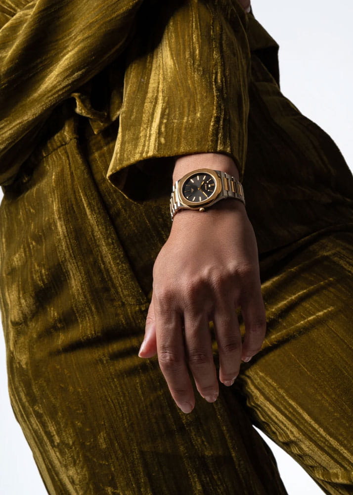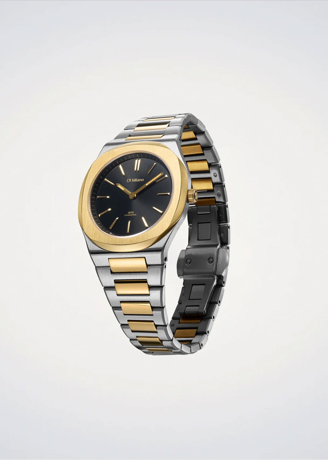 Женские кварцевые часы D1 Milano Ultra Thin UHBL03 — это стильное сочетание элегантности и современного дизайна. Изящный ультратонкий корпус выполнен из нержавеющей стали, диаметром 34 мм, что придаст образу элегантности и надежности. Изысканный циферблат с метками в виде штрихов придает модели особый блеск. Циферблат защищен сапфировым стекломСапфировое стеклоПрочный и надёжный материал из кристалла сапфира синтетического происхождения, характеризующийся особой твёрдостью и устойчивостью к царапинам и повреждениям. с антибликовым покрытиемАнтибликовое покрытиеСлой оксида металла в 0,13-0,3 микрон, благодаря которому стекло часов не бликует и не отражает свет. Антибликовое покрытие уменьшает отражение света в 10 раз, обеспечивая отличную читаемость показателей циферблата., обеспечивающий устойчивость к царапинам. БезельБезельВнешний ободок, закрепляющий стекло. В спортивных часах так называется поворотное кольцо с делениями на циферблате, выполняет роль таймера – замеряет отрезки времени на шкале. Неподвижный безель – элемент декора. Однонаправленно вращающийся безель на дайверских часах позволяет фиксировать моменты погружения и выныривания на поверхность. с PVD-покрытиемPVDУльтратонкое покрытие наносится в технике вакуумного напыления, сочетает в себе нитрид титана особой прочности со слоем золота или оксида хрома. Несёт в себе декоративную или защитную функцию. золотистого цвета. Стрелки с люминесцентным покрытиемЛюминесцентное покрытиеПозволяет считывать показания времени в темноте. Производители наносят на стрелки, часовые индексы, безель или поверхность циферблата светонакопительный состав, дающий холодное свечение.. Часы оснащены надежным кварцевым механизмом. Стальной браслет с частичным PVD-покрытиемPVDУльтратонкое покрытие наносится в технике вакуумного напыления, сочетает в себе нитрид титана особой прочности со слоем золота или оксида хрома. Несёт в себе декоративную или защитную функцию. на застёжке-бабочке с кнопкамиЗастёжка "бабочка"Такой вид застёжки дополняется предохранителями, помогающими избежать случайного раскрытия браслета. Обладают изящным исполнением. , гарантирует комфортное и безопасное ношение. Класс водозащиты: 50 метров позволит защитить корпус от случайных брызг или капель дождя. Индивидуальный серийный номер. Отличный выбор для тех, кто ценит утонченность и качество.