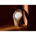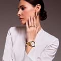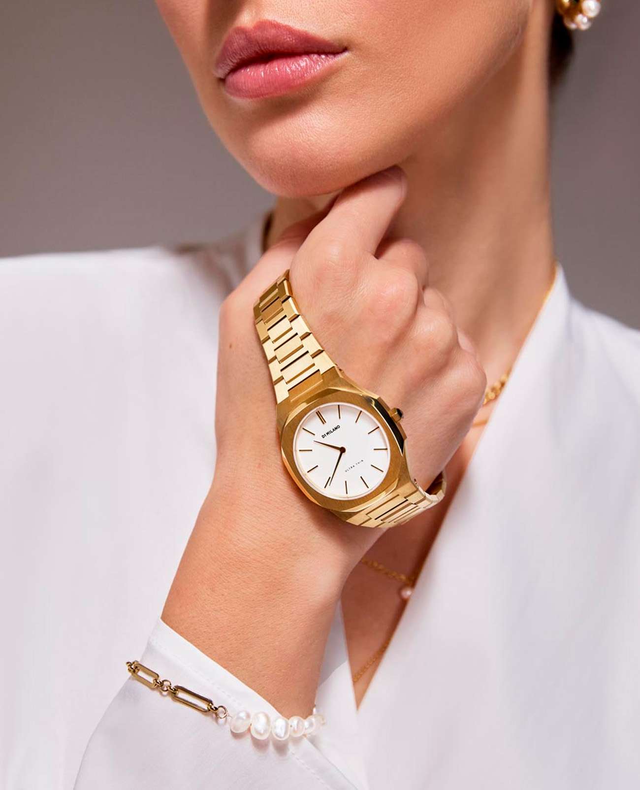 Женские наручные часы D1 Milano UTBL03 из коллекции Ultra Thin сочетают в себе классический дизайн и современные технологии. Модель обладает круглым корпусом диаметром 38 мм, изготовленным из нержавеющей стали с PVDPVDУльтратонкое покрытие наносится в технике вакуумного напыления, сочетает в себе нитрид титана особой прочности со слоем золота или оксида хрома. Несёт в себе декоративную или защитную функцию.-покрытием, что обеспечивает высокую устойчивость к внешним воздействиям. Браслет также выполнен из нержавеющей стали с раскладной застежкойРаскладной замокДанный вариант застежки используется только на часах с металлическим браслетом. Отличительная особенность такого крепления в том, что длина браслета становится универсальной и вы можете самостоятельно отрегулировать нужный вам размер – застежка просто двигается по браслету часов., гарантирующей комфортное ношение и безопасность. Циферблат украшен метками в виде штрихов и оснащен стрелочным механизмом, который подчеркивает элегантность модели. Для защиты используется сапфировое стеклоСапфировое стеклоПрочный и надёжный материал из кристалла сапфира синтетического происхождения, характеризующийся особой твёрдостью и устойчивостью к царапинам и повреждениям. с антибликовым покрытиемАнтибликовое покрытиеСлой оксида металла в 0,13-0,3 микрон, благодаря которому стекло часов не бликует и не отражает свет. Антибликовое покрытие уменьшает отражение света в 10 раз, обеспечивая отличную читаемость показателей циферблата., обеспечивающее прочную защиту от царапин и бликов. Часы работают на кварцевом механизме, что гарантирует точность хода с погрешностью +/- 15 секунд в месяц, не требуя регулярного подзавода. Водонепроницаемость часов достигает 5 атмосфер (50 метров), что позволяет использовать их во время мытья рук или плавания, однако не рекомендуется для глубоководного дайвинга. Толщина ультратонкого корпуса составляет всего 6 мм, делая аксессуар легким и удобным для повседневного использования.