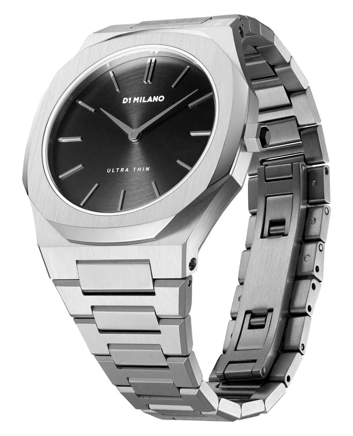 Женские наручные часы D1 Milano UTBL05 из коллекции Ultra Thin сочетают в себе элегантный дизайн и современные технологии. Модель обладает круглым корпусом диаметром 34 мм, изготовленным из высококачественной нержавеющей стали 316L, что обеспечивает устойчивость к внешним воздействиям. Толщина ультратонкого корпуса составляет всего 6 мм, делая аксессуар легким и удобным для повседневного использования. Браслет также выполнен из нержавеющей стали с раскладной застежкойРаскладной замокДанный вариант застежки используется только на часах с металлическим браслетом. Отличительная особенность такого крепления в том, что длина браслета становится универсальной и вы можете самостоятельно отрегулировать нужный вам размер – застежка просто двигается по браслету часов., гарантирующей комфортное ношение и безопасность. Черный циферблат украшен метками в виде штрихов и оснащен стрелочным механизмом, который подчеркивает элегантность модели. Для защиты используется сапфировое стеклоСапфировое стеклоПрочный и надёжный материал из кристалла сапфира синтетического происхождения, характеризующийся особой твёрдостью и устойчивостью к царапинам и повреждениям. с антибликовым покрытиемАнтибликовое покрытиеСлой оксида металла в 0,13-0,3 микрон, благодаря которому стекло часов не бликует и не отражает свет. Антибликовое покрытие уменьшает отражение света в 10 раз, обеспечивая отличную читаемость показателей циферблата., обеспечивающее прочную защиту от царапин и бликов. Часы работают на кварцевом механизме, гарантирующем точность хода без необходимости регулярного подзавода. Водонепроницаемость часов достигает 5 атмосфер (50 метров), что позволяет использовать их во время мытья рук или плавания, однако не рекомендуется для глубоководного дайвинга.