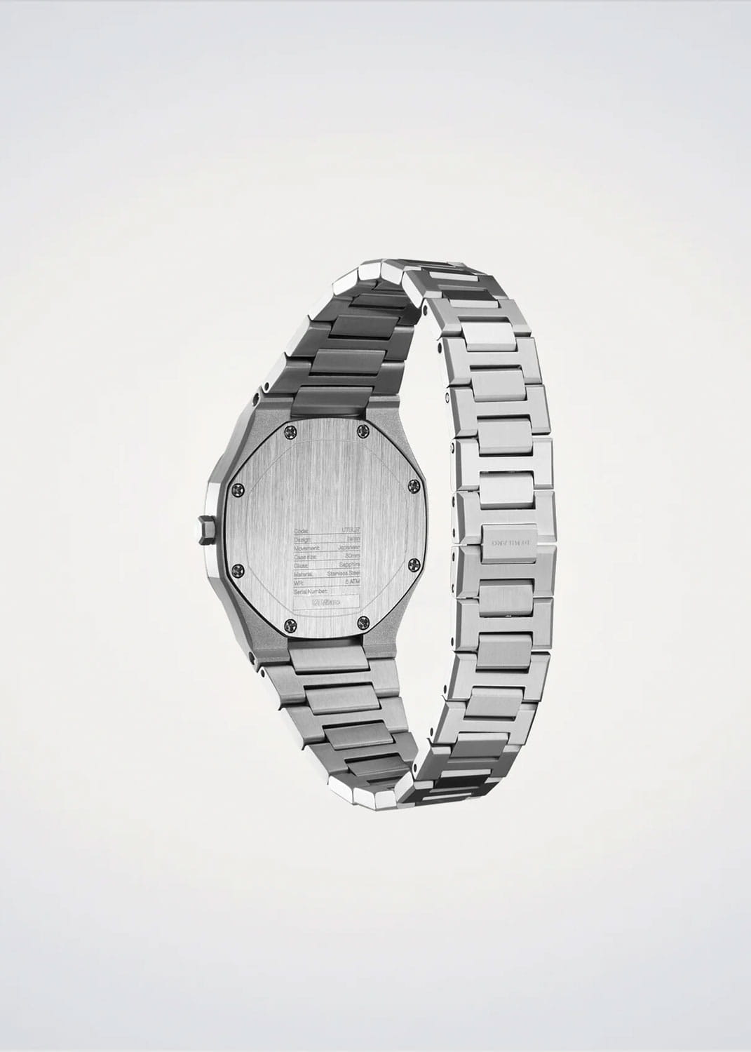 Женские кварцевые часы D1 Milano Ultra Thin UTBL37 — это стильное сочетание элегантности и современного дизайна. Изящный ультратонкий корпус выполнен из нержавеющей стали серебристого цвета, диаметром 30 мм, что придаст образу элегантности и надежности. Изысканный циферблат с метками в виде штрихов придает модели особый блеск. Циферблат защищен сапфировым стекломСапфировое стеклоПрочный и надёжный материал из кристалла сапфира синтетического происхождения, характеризующийся особой твёрдостью и устойчивостью к царапинам и повреждениям. с антибликовым покрытиемАнтибликовое покрытиеСлой оксида металла в 0,13-0,3 микрон, благодаря которому стекло часов не бликует и не отражает свет. Антибликовое покрытие уменьшает отражение света в 10 раз, обеспечивая отличную читаемость показателей циферблата., обеспечивающий устойчивость к царапинам. Часы оснащены надежным кварцевым механизмом. Стальной браслет на застёжке-бабочке с кнопкамиЗастёжка "бабочка"Такой вид застёжки дополняется предохранителями, помогающими избежать случайного раскрытия браслета. Обладают изящным исполнением. , гарантирует комфортное и безопасное ношение. Класс водозащиты: 50 метров позволит защитить корпус от случайных брызг или капель дождя. Отличный выбор для тех, кто ценит утонченность и качество.