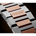 Наручные часы D1 Milano UTBU03 сочетают в себе элегантный дизайн и современные технологии. Модель обладает корпусом диаметром 38 мм, изготовленным из нержавеющей стали, что обеспечивает высокую устойчивость к внешним воздействиям. БезельБезельВнешний ободок, закрепляющий стекло. В спортивных часах так называется поворотное кольцо с делениями на циферблате, выполняет роль таймера – замеряет отрезки времени на шкале. Неподвижный безель – элемент декора. Однонаправленно вращающийся безель на дайверских часах позволяет фиксировать моменты погружения и выныривания на поверхность. с PVD-покрытиемPVDУльтратонкое покрытие наносится в технике вакуумного напыления, сочетает в себе нитрид титана особой прочности со слоем золота или оксида хрома. Несёт в себе декоративную или защитную функцию.. Циферблат черного цвета украшен метками в виде штрихов, а его защиту обеспечивает прочное сапфировое стеклоСапфировое стеклоПрочный и надёжный материал из кристалла сапфира синтетического происхождения, характеризующийся особой твёрдостью и устойчивостью к царапинам и повреждениям., известное своей устойчивостью к царапинам. Часы оснащены кварцевым механизмом, гарантирующим точность хода без необходимости подзаводки. Браслет выполнен из нержавеющей стали на раскладной застёжкеРаскладная застёжкаТакой тип застёжки используется только на браслетах из металла. Она никогда не раскрывается полностью, происходит разделение на 2 и более частей. Раскладывающая застёжка снизит вероятность потери часов к минимуму., что обеспечивает комфортное ношение на протяжении всего дня. Водонепроницаемость модели составляет 50 метров, что позволяет использовать часы в повседневной жизни, включая контакт с водой при мытье рук или дожде, однако не рекомендуется для погружений или активных водных видов спорта. Изготовленные в Италии, эти ультратонкие часы станут стильным аксессуаром как для мужчин, так и для женщин, идеально дополняя образ в любой ситуации.