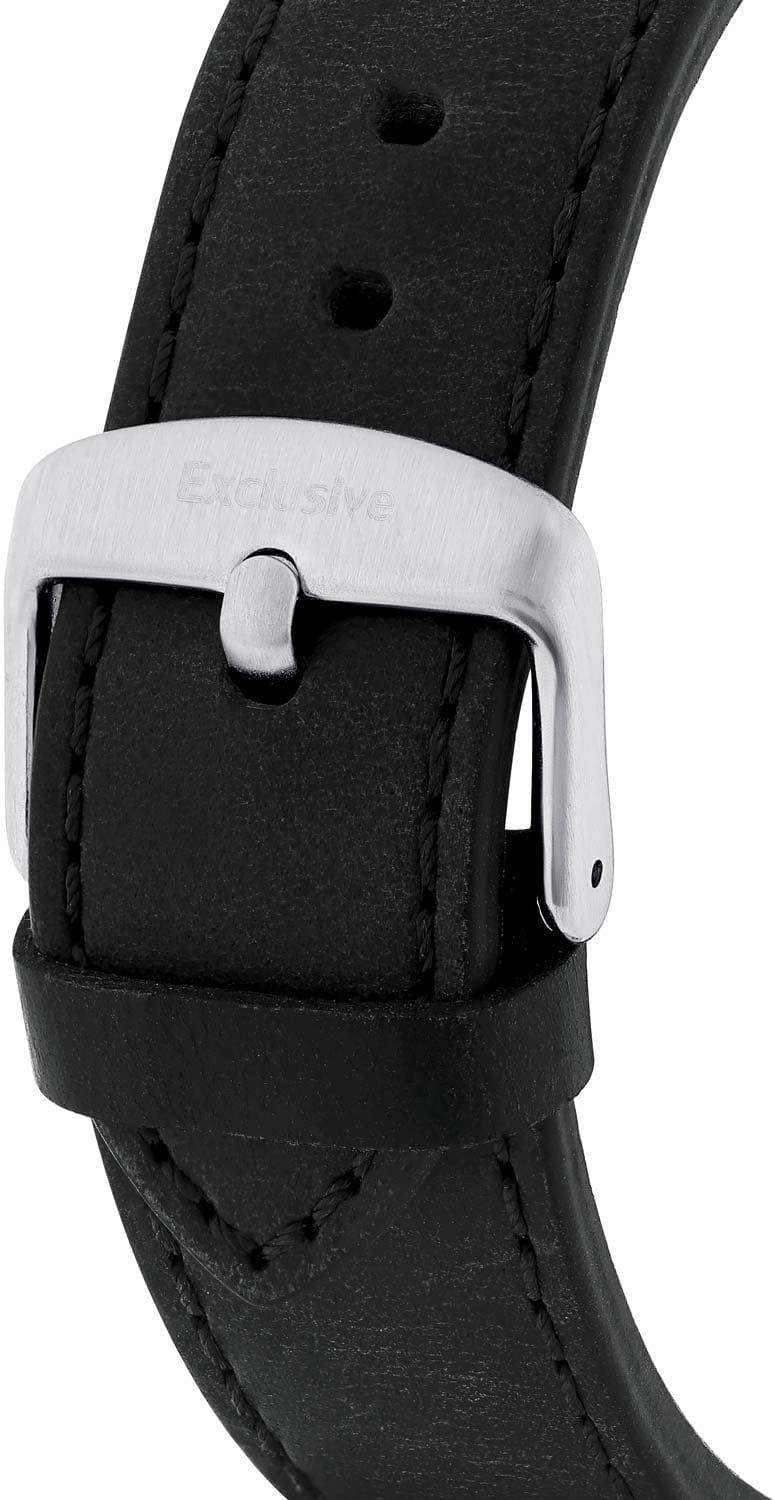 Мужские кварцевые часы Daniel Klein — это спортивный и функциональный аксессуар для активных мужчин. Корпус диаметром 43 мм выполнен из нержавеющей стали. Циферблат чёрного цвета выполнен по технологии Sunray («солнечные лучи») и оформлен штрихами и мечевидными стрелками в стиле Sword. Присутствуют индикаторы 24-часового формата времени и второго часового пояса (GMTВторой часовой поясФункция, позволяющая отображать время двух часовых поясов одновременно.). Окошко даты расположено между 4 и 5 часами. Стрелки и метки с люминесцентным покрытиемЛюминесцентное покрытиеПозволяет считывать показания времени в темноте. Производители наносят на стрелки, часовые индексы, безель или поверхность циферблата светонакопительный состав, дающий холодное свечение., обеспечивающим хорошую читаемость в темноте. Циферблат защищён минеральным стекломМинеральное стеклоМинеральное стекло представляет собой искусственно выращенный минерал кварца. Такое стекло отличается особой устойчивостью к повреждениям и царапинам. Уступает по некоторым качествам сапфировому стеклу.. Заводная головка рифлёная. Часы оснащены кожаным ремешком на классической пряжке. Водонепроницаемость 50 м позволяет использовать часы в повседневных условиях. Идеальный выбор для тех, кто ценит турецкое качество и универсальный дизайн.