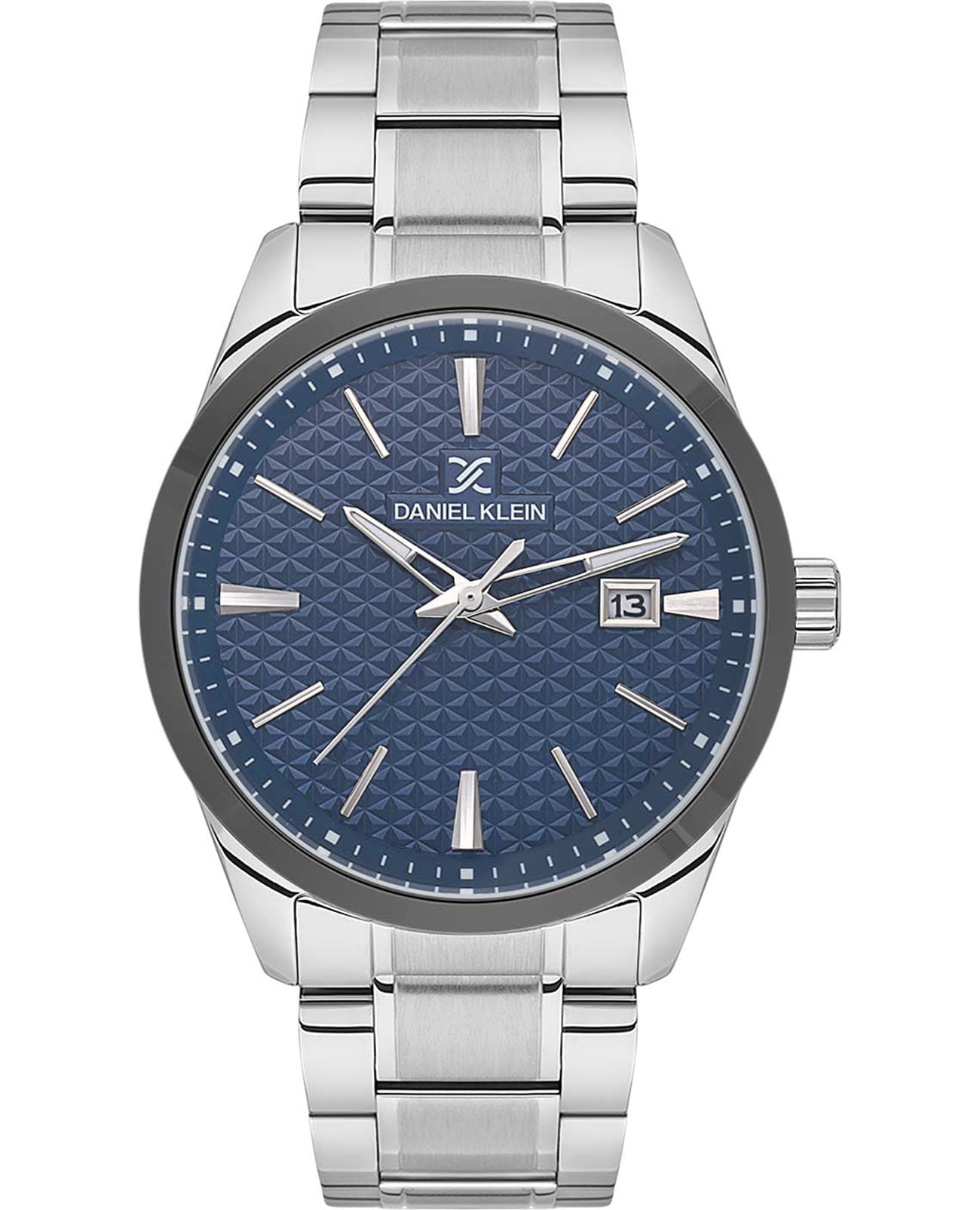Мужские кварцевые часы Daniel Klein — это удобный и надёжный аксессуар для повседневного ношения. Корпус диаметром 42 мм выполнен из нержавеющей стали. БезельБезельВнешний ободок, закрепляющий стекло. В спортивных часах так называется поворотное кольцо с делениями на циферблате, выполняет роль таймера – замеряет отрезки времени на шкале. Неподвижный безель – элемент декора. Однонаправленно вращающийся безель на дайверских часах позволяет фиксировать моменты погружения и выныривания на поверхность. с IP-покрытиемIP-покрытиеМетод ионного напыления. Демонстрирует повышенную устойчивость к истиранию, окислению и химическим веществам. Под воздействием высокого давления и температуры около 1500°C молекулы металла надёжно соединяются с частицами корпуса часов.. Циферблат синего цвета имеет фактурное покрытие, оформлен штрихами и стрелками. Окошко даты расположено в положении 3 часов. Стрелки с люминесцентным покрытиемЛюминесцентное покрытиеПозволяет считывать показания времени в темноте. Производители наносят на стрелки, часовые индексы, безель или поверхность циферблата светонакопительный состав, дающий холодное свечение., обеспечивающим хорошую читаемость в темноте. Циферблат защищён минеральным стекломМинеральное стеклоМинеральное стекло представляет собой искусственно выращенный минерал кварца. Такое стекло отличается особой устойчивостью к повреждениям и царапинам. Уступает по некоторым качествам сапфировому стеклу.. Часы оснащены стальным браслетом на раскладной застёжкеРаскладная застёжкаТакой тип застёжки используется только на браслетах из металла. Она никогда не раскрывается полностью, происходит разделение на 2 и более частей. Раскладывающая застёжка снизит вероятность потери часов к минимуму.. Водонепроницаемость 50 м позволяет использовать часы в повседневных условиях. Идеальный выбор для тех, кто ценит турецкое качество и универсальный дизайн.