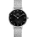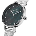Женские наручные часы с минеральным стекломМинеральное стеклоМинеральное стекло представляет собой искусственно выращенный минерал кварца. Такое стекло отличается особой устойчивостью к повреждениям и царапинам. Уступает по некоторым качествам сапфировому стеклу. Daniel Wellington Petite DW00100593, кварцевый механизм с высокой точностью. Корпус часов изготовлен из стали. Циферблат украшен 12 кристаллами Swarovski. Накладные метки в виде точек из кристаллов. Рифленая заводная головка. Индивидуальный серийный номер. Класс водозащиты: 30 метров, позволит защитить корпус от случайных брызг или капель дождя. Стальной браслет с рельефным рисунком в виде облаков на раскладном замкеРаскладной замокДанный вариант застежки используется только на часах с металлическим браслетом. Отличительная особенность такого крепления в том, что длина браслета становится универсальной и вы можете самостоятельно отрегулировать нужный вам размер – застежка просто двигается по браслету часов..