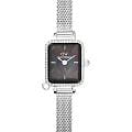 Женские наручные часы с минеральным стекломМинеральное стеклоМинеральное стекло представляет собой искусственно выращенный минерал кварца. Такое стекло отличается особой устойчивостью к повреждениям и царапинам. Уступает по некоторым качествам сапфировому стеклу. Daniel Wellington Quadro Mini Crystal Zodiac Sterling DW00100750, кварцевый механизм с высокой точностью. Миниатюрный корпус часов изготовлен из нержавеющей стали. БезельБезельВнешний ободок, закрепляющий стекло. В спортивных часах так называется поворотное кольцо с делениями на циферблате, выполняет роль таймера – замеряет отрезки времени на шкале. Неподвижный безель – элемент декора. Однонаправленно вращающийся безель на дайверских часах позволяет фиксировать моменты погружения и выныривания на поверхность. украшен кристаллами Swarovski. Матовый циферблат украшен фирменным логотипом Daniel Wellington. Накладные метки в виде штрихов. Японский кварцевый механизм. Рифленая заводная головка. Класс водозащиты: 30 метров, позволит защитить корпус от случайных брызг или капель дождя. Стальной браслет миланского плетения на раскладном замкеРаскладной замокДанный вариант застежки используется только на часах с металлическим браслетом. Отличительная особенность такого крепления в том, что длина браслета становится универсальной и вы можете самостоятельно отрегулировать нужный вам размер – застежка просто двигается по браслету часов.. Корпус дополнен колечком для подвески.