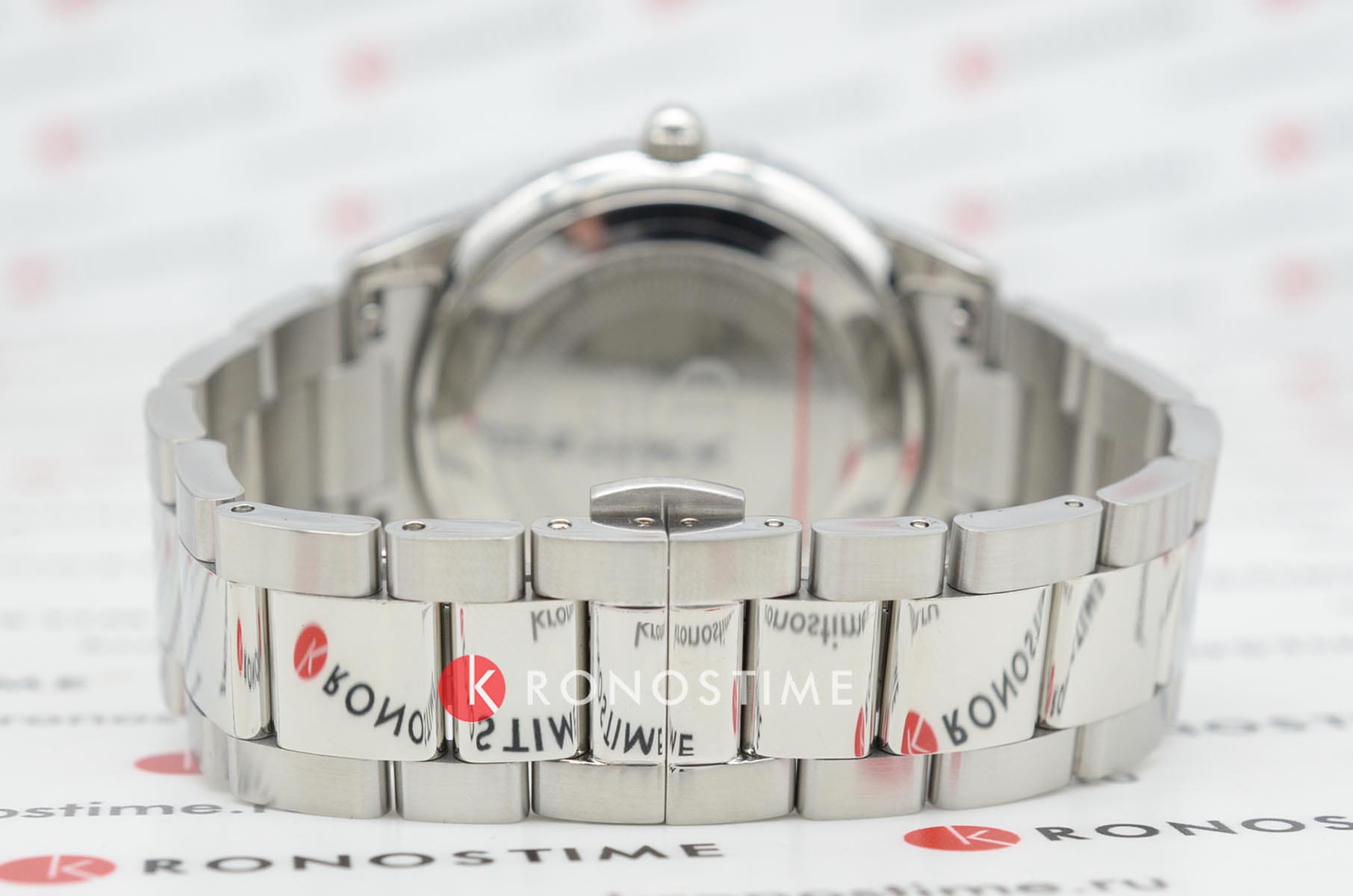 Стальной браслет с чередованием сатинированных и полированных звеньев фиксируется на запястье при помощи удобной застёжке-бабочке с кнопкамиЗастёжка "бабочка"Такой вид застёжки дополняется предохранителями, помогающими избежать случайного раскрытия браслета. Обладают изящным исполнением. , обеспечивающей комфорт и надёжность при носке.