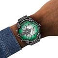 Мужские кварцевые часы Diesel Mr. Daddy 2.0 DZ7488 — это многофункциональный аксессуар, сочетающий в себе стиль и технические возможности. Модель оснащена хронографомХронографФункция позволяет измерять отрезки времени с особой точностью: часы, минуты, секунды. Верным признаком хронографа является наличие на циферблате 3 дополнительных окошек-счётчиков. с секундомеромСекундомерСекундоме́р — прибор, способный измерять интервалы времени с точностью до долей секунды., что делает её удобной для измерения времени с высокой точностью. Циферблат зеленого цвета, а его дизайн включает штриховые метки, а также окошко даты в положении 3 часов. Защиту циферблата обеспечивает Минеральное стеклоМинеральное стеклоМинеральное стекло представляет собой искусственно выращенный минерал кварца. Такое стекло отличается особой устойчивостью к повреждениям и царапинам. Уступает по некоторым качествам сапфировому стеклу., устойчивое к мелким повреждениям. Корпус диаметром 54 мм выполнен из стали с чёрным PVD-покрытиемPVDУльтратонкое покрытие наносится в технике вакуумного напыления, сочетает в себе нитрид титана особой прочности со слоем золота или оксида хрома. Несёт в себе декоративную или защитную функцию., включающим матовые и полированные детали. Стальной браслет с чёрным PVD-покрытиемPVDУльтратонкое покрытие наносится в технике вакуумного напыления, сочетает в себе нитрид титана особой прочности со слоем золота или оксида хрома. Несёт в себе декоративную или защитную функцию. оснащён раскладной застёжкойРаскладная застёжкаТакой тип застёжки используется только на браслетах из металла. Она никогда не раскрывается полностью, происходит разделение на 2 и более частей. Раскладывающая застёжка снизит вероятность потери часов к минимуму. с двумя кнопками, обеспечивающей комфорт и надёжную фиксацию на запястье. Водонепроницаемость 30WR позволяет использовать модель при мытье рук или под лёгким дождём. Эти часы станут универсальным аксессуаром для тех, кто ценит сочетание функциональности, эстетики и надёжности — идеальный выбор для повседневного использования и активного образа жизни.