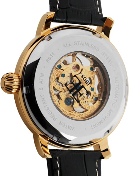Мужские английские механические часы-скелетоны Earnshaw ES-8011-04, механический механизм (автоматический калибр) с высокой точностью. Класс водозащиты: 50 метров, позволит защитить корпус от случайных брызг или капель дождя. Корпус часов изготовлен из стали, цвета.