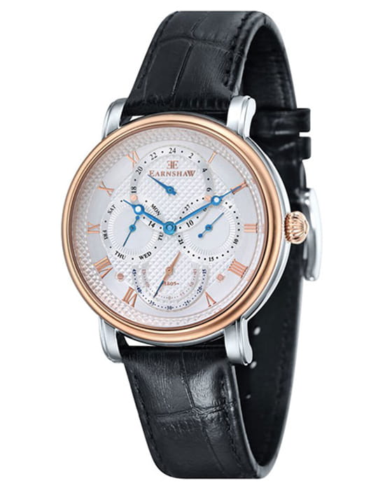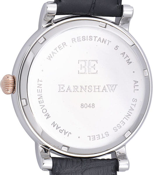Мужские английские механические часы Earnshaw ES-8048-04, механический механизм (автоматический калибр) с высокой точностью. Класс водозащиты: 50 метров, позволит защитить корпус от случайных брызг или капель дождя. Корпус часов изготовлен из стали, цвета.