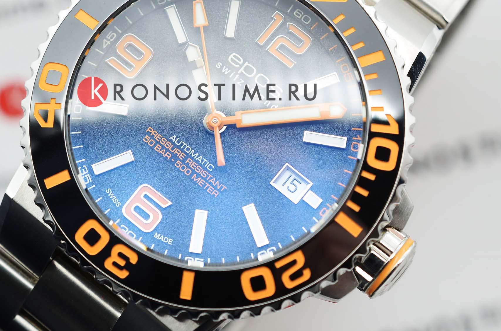 Мужские швейцарские механические часы с сапфировым стекломСапфировое стеклоПрочный и надёжный материал из кристалла сапфира синтетического происхождения, характеризующийся особой твёрдостью и устойчивостью к царапинам и повреждениям. Epos 3441.131.99.52.30 керамическим безелем и гелиевым клапаном. Изысканные часы с круглым корпусом. Доступный взору механизм и строгий дизайн подчеркивает их сдержанный характер. Oeuvre d'art Limited Edition. Особенный корпус для дайверов с водонепроницаемостью в 50 атмосфер. Люминесцентная подсветкаЛюминесцентное покрытиеПозволяет считывать показания времени в темноте. Производители наносят на стрелки, часовые индексы, безель или поверхность циферблата светонакопительный состав, дающий холодное свечение. стрелок и меток. Раскладная застёжкаРаскладная застёжкаТакой тип застёжки используется только на браслетах из металла. Она никогда не раскрывается полностью, происходит разделение на 2 и более частей. Раскладывающая застёжка снизит вероятность потери часов к минимуму.