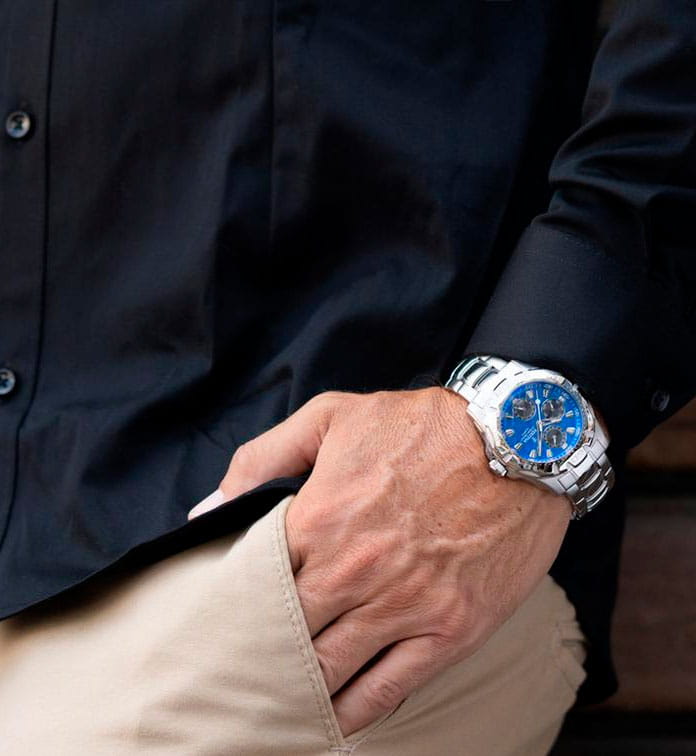 Удобные и практичные часы для стильных мужчин, знающих цену времени Multifuncion. Кварцевый механизм с высокой точностью. Минеральное стеклоМинеральное стеклоМинеральное стекло представляет собой искусственно выращенный минерал кварца. Такое стекло отличается особой устойчивостью к повреждениям и царапинам. Уступает по некоторым качествам сапфировому стеклу. устойчивое к появлению царапин, обладающее высокой прозрачностью. Класс водозащиты: 50 метров, позволит защитить корпус от случайных брызг или капель дождя. Циферблат с люминесцентным покрытиемЛюминесцентное покрытиеПозволяет считывать показания времени в темноте. Производители наносят на стрелки, часовые индексы, безель или поверхность циферблата светонакопительный состав, дающий холодное свечение. стрелок и меток. Корпус часов изготовлен из нержавеющей стали 316L. Браслет с раскладной застёжкойРаскладная застёжкаТакой тип застёжки используется только на браслетах из металла. Она никогда не раскрывается полностью, происходит разделение на 2 и более частей. Раскладывающая застёжка снизит вероятность потери часов к минимуму..