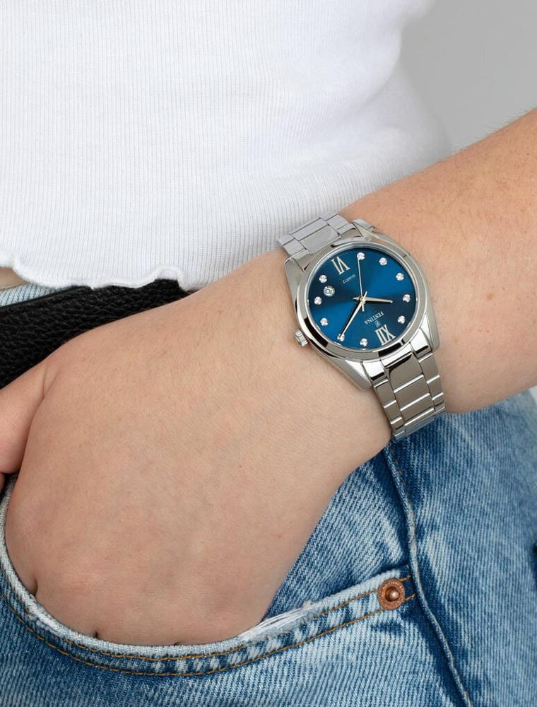 Яркий стиль и функциональность этих часов придутся по душе активной девушке. Кварцевый механизм с высокой точностью. Минеральное стеклоМинеральное стеклоМинеральное стекло представляет собой искусственно выращенный минерал кварца. Такое стекло отличается особой устойчивостью к повреждениям и царапинам. Уступает по некоторым качествам сапфировому стеклу. устойчивое к появлению царапин, обладающее высокой прозрачностью. Циферблат выполнен по технологии Sunray (солнечные лучи). Класс водозащиты: 50 метров, позволит защитить корпус от случайных брызг или капель дождя. Корпус часов изготовлен из нержавеющей стали. Браслет с раскладной застёжкойРаскладная застёжкаТакой тип застёжки используется только на браслетах из металла. Она никогда не раскрывается полностью, происходит разделение на 2 и более частей. Раскладывающая застёжка снизит вероятность потери часов к минимуму..