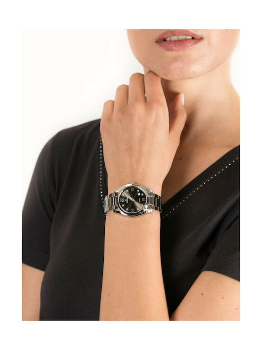 Яркий стиль и функциональность этих часов придутся по душе активной девушке. Кварцевый механизм с высокой точностью. Минеральное стеклоМинеральное стеклоМинеральное стекло представляет собой искусственно выращенный минерал кварца. Такое стекло отличается особой устойчивостью к повреждениям и царапинам. Уступает по некоторым качествам сапфировому стеклу. устойчивое к появлению царапин, обладающее высокой прозрачностью. Циферблат выполнен по технологии Sunray (солнечные лучи). Класс водозащиты: 50 метров, позволит защитить корпус от случайных брызг или капель дождя. Корпус часов изготовлен из нержавеющей стали. Браслет с раскладной застёжкойРаскладная застёжкаТакой тип застёжки используется только на браслетах из металла. Она никогда не раскрывается полностью, происходит разделение на 2 и более частей. Раскладывающая застёжка снизит вероятность потери часов к минимуму..