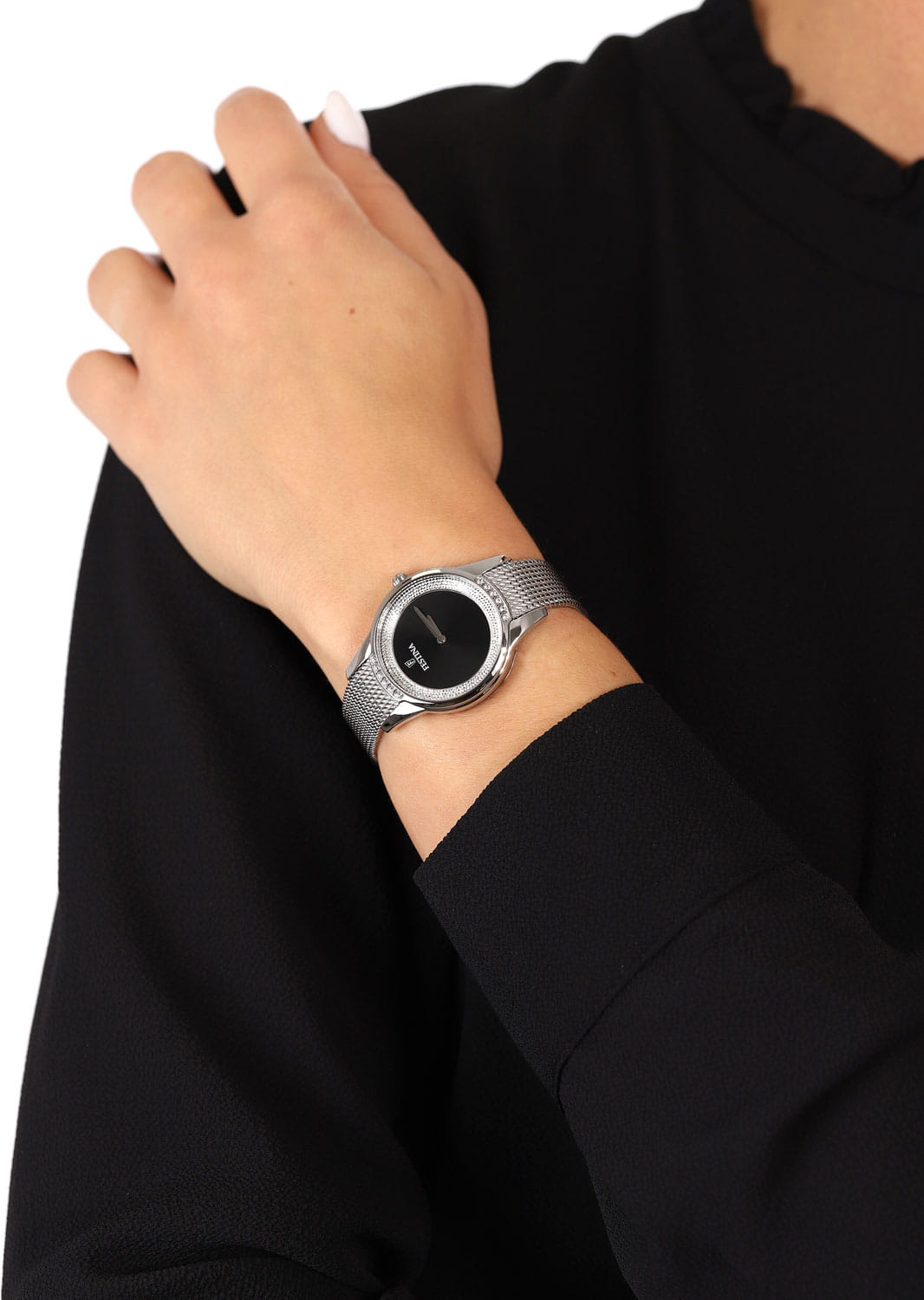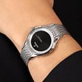 Яркий стиль и функциональность этих часов придутся по душе активной девушке. Кварцевый механизм с высокой точностью. Минеральное стеклоМинеральное стеклоМинеральное стекло представляет собой искусственно выращенный минерал кварца. Такое стекло отличается особой устойчивостью к повреждениям и царапинам. Уступает по некоторым качествам сапфировому стеклу. устойчивое к появлению царапин, обладающее высокой прозрачностью. Класс водозащиты: 50 метров, позволит защитить корпус от случайных брызг или капель дождя. Корпус часов изготовлен из нержавеющей стали 316L. БезельБезельВнешний ободок, закрепляющий стекло. В спортивных часах так называется поворотное кольцо с делениями на циферблате, выполняет роль таймера – замеряет отрезки времени на шкале. Неподвижный безель – элемент декора. Однонаправленно вращающийся безель на дайверских часах позволяет фиксировать моменты погружения и выныривания на поверхность. украшен цирконами. Браслет с раскладной застёжкойРаскладная застёжкаТакой тип застёжки используется только на браслетах из металла. Она никогда не раскрывается полностью, происходит разделение на 2 и более частей. Раскладывающая застёжка снизит вероятность потери часов к минимуму..