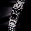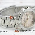 Кварцевый механизм с высокой точностью. Минеральное стеклоМинеральное стеклоМинеральное стекло представляет собой искусственно выращенный минерал кварца. Такое стекло отличается особой устойчивостью к повреждениям и царапинам. Уступает по некоторым качествам сапфировому стеклу. устойчивое к появлению царапин, обладающее высокой прозрачностью. Стрелки с люминесцентным покрытиемЛюминесцентное покрытиеПозволяет считывать показания времени в темноте. Производители наносят на стрелки, часовые индексы, безель или поверхность циферблата светонакопительный состав, дающий холодное свечение.. Циферблат выполнен по технологии Sunray (солнечные лучи) и украшен кристаллами. Окошко даты с увеличительным стеклом. Класс водозащиты: 100 метров, позволит плавать, нырять и заниматься другими водными видами спорта. Поворотный безельБезельВнешний ободок, закрепляющий стекло. В спортивных часах так называется поворотное кольцо с делениями на циферблате, выполняет роль таймера – замеряет отрезки времени на шкале. Неподвижный безель – элемент декора. Однонаправленно вращающийся безель на дайверских часах позволяет фиксировать моменты погружения и выныривания на поверхность.. Корпус часов изготовлен из нержавеющей стали. Браслет с раскладной застёжкойРаскладная застёжкаТакой тип застёжки используется только на браслетах из металла. Она никогда не раскрывается полностью, происходит разделение на 2 и более частей. Раскладывающая застёжка снизит вероятность потери часов к минимуму.. Застежка с системой блокировки.
