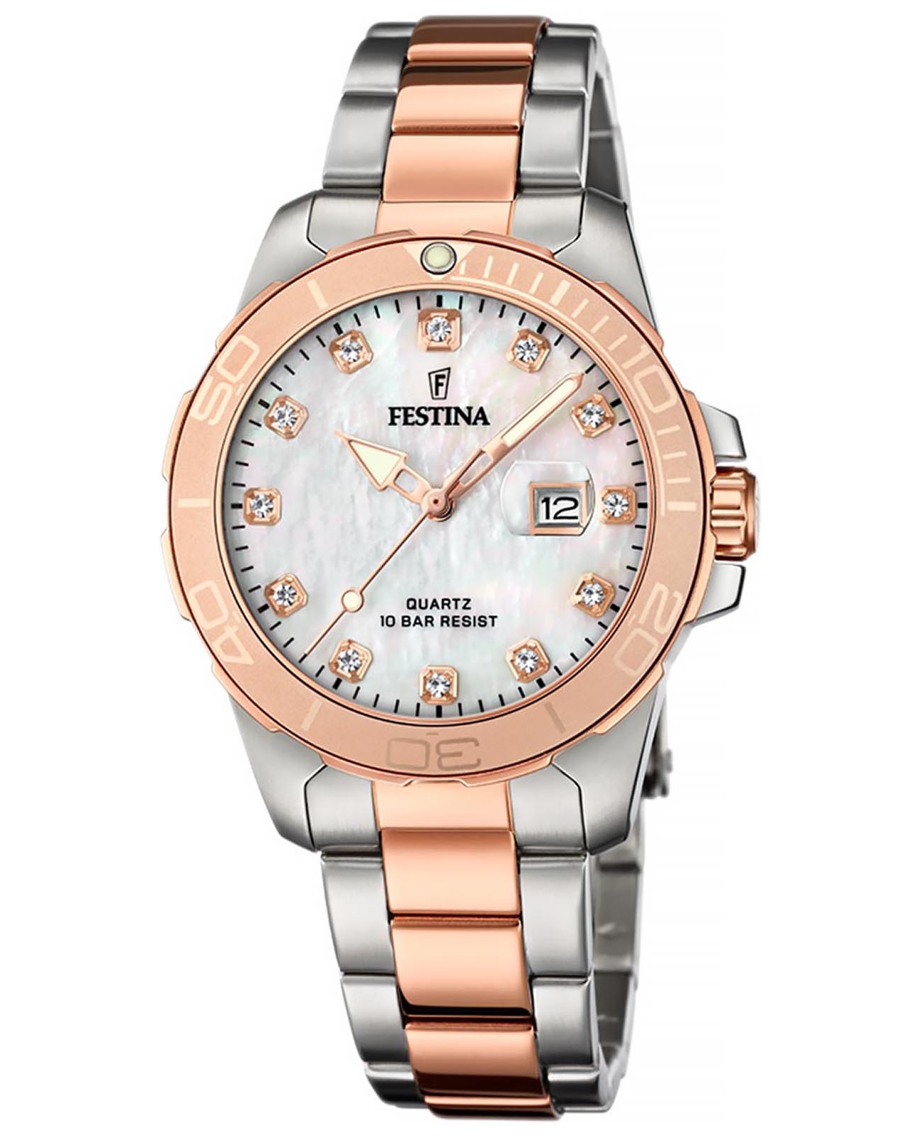 Яркий стиль и функциональность этих часов придутся по душе активной девушке. Кварцевый механизм с высокой точностью. Минеральное стеклоМинеральное стеклоМинеральное стекло представляет собой искусственно выращенный минерал кварца. Такое стекло отличается особой устойчивостью к повреждениям и царапинам. Уступает по некоторым качествам сапфировому стеклу. устойчивое к появлению царапин, обладающее высокой прозрачностью. Циферблат выполнен по технологии Sunray (солнечные лучи). Класс водозащиты: 100 метров, позволит плавать, нырять и заниматься другими водными видами спорта. Корпус часов изготовлен из нержавеющей стали. БезельБезельВнешний ободок, закрепляющий стекло. В спортивных часах так называется поворотное кольцо с делениями на циферблате, выполняет роль таймера – замеряет отрезки времени на шкале. Неподвижный безель – элемент декора. Однонаправленно вращающийся безель на дайверских часах позволяет фиксировать моменты погружения и выныривания на поверхность. c IP-покрытиемIP-покрытиеМетод ионного напыления. Демонстрирует повышенную устойчивость к истиранию, окислению и химическим веществам. Под воздействием высокого давления и температуры около 1500°C молекулы металла надёжно соединяются с частицами корпуса часов.. Браслет с частичным IP-покрытиемIP-покрытиеМетод ионного напыления. Демонстрирует повышенную устойчивость к истиранию, окислению и химическим веществам. Под воздействием высокого давления и температуры около 1500°C молекулы металла надёжно соединяются с частицами корпуса часов. и с раскладной застёжкойРаскладная застёжкаТакой тип застёжки используется только на браслетах из металла. Она никогда не раскрывается полностью, происходит разделение на 2 и более частей. Раскладывающая застёжка снизит вероятность потери часов к минимуму..