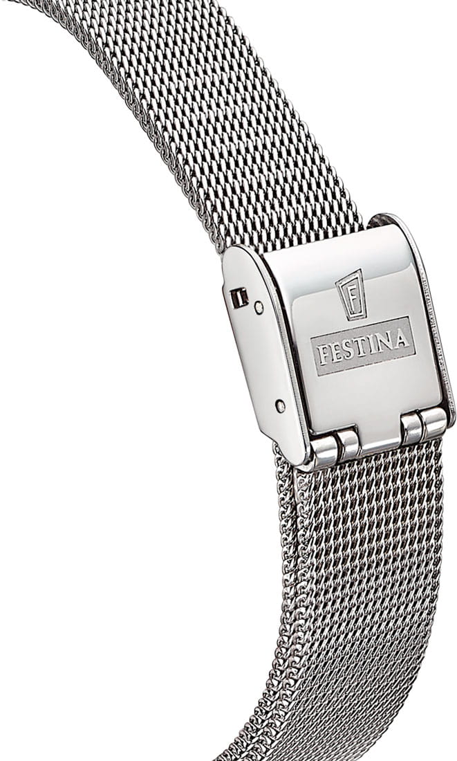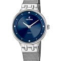 Стильные часы придутся по душе любой девушке. Кварцевый механизм с высокой точностью. Минеральное стеклоМинеральное стеклоМинеральное стекло представляет собой искусственно выращенный минерал кварца. Такое стекло отличается особой устойчивостью к повреждениям и царапинам. Уступает по некоторым качествам сапфировому стеклу. устойчивое к появлению царапин, обладающее высокой прозрачностью. Класс водозащиты: 50 метров, позволит защитить корпус от случайных брызг или капель дождя. Корпус часов изготовлен из нержавеющей стали 316L. Циферблат украшен цирконами. Браслет миланского плетения с раскладной застёжкойРаскладная застёжкаТакой тип застёжки используется только на браслетах из металла. Она никогда не раскрывается полностью, происходит разделение на 2 и более частей. Раскладывающая застёжка снизит вероятность потери часов к минимуму..