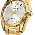 Наручные женские часы Festina Alegria F20640/1, кварцевый механизм с высокой точностью. Минеральное стеклоМинеральное стеклоМинеральное стекло представляет собой искусственно выращенный минерал кварца. Такое стекло отличается особой устойчивостью к повреждениям и царапинам. Уступает по некоторым качествам сапфировому стеклу. устойчивое к потертостям. Класс водозащиты: 50 метров, позволит защитить корпус от случайных брызг или капель дождя. Стрелки и метки с люминесцентным покрытиемЛюминесцентное покрытиеПозволяет считывать показания времени в темноте. Производители наносят на стрелки, часовые индексы, безель или поверхность циферблата светонакопительный состав, дающий холодное свечение.. Корпус и браслет часов изготовлены из стали с PVD-покрытиемPVDУльтратонкое покрытие наносится в технике вакуумного напыления, сочетает в себе нитрид титана особой прочности со слоем золота или оксида хрома. Несёт в себе декоративную или защитную функцию.. Браслет на раскладной застёжкеРаскладная застёжкаТакой тип застёжки используется только на браслетах из металла. Она никогда не раскрывается полностью, происходит разделение на 2 и более частей. Раскладывающая застёжка снизит вероятность потери часов к минимуму..