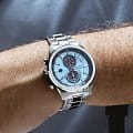 Кварцевый механизм с высокой точностью c хронографомХронографФункция позволяет измерять отрезки времени с особой точностью: часы, минуты, секунды. Верным признаком хронографа является наличие на циферблате 3 дополнительных окошек-счётчиков.. Минеральное стеклоМинеральное стеклоМинеральное стекло представляет собой искусственно выращенный минерал кварца. Такое стекло отличается особой устойчивостью к повреждениям и царапинам. Уступает по некоторым качествам сапфировому стеклу. устойчивое к появлению царапин, обладающее высокой прозрачностью. Класс водозащиты: 100 метров, позволит плавать, нырять и заниматься другими водными видами спорта. Корпус часов изготовлен из нержавеющей стали. Браслет из стали с раскладной застёжкойРаскладная застёжкаТакой тип застёжки используется только на браслетах из металла. Она никогда не раскрывается полностью, происходит разделение на 2 и более частей. Раскладывающая застёжка снизит вероятность потери часов к минимуму.. Стрелки и метки с люминесцентным покрытиемЛюминесцентное покрытиеПозволяет считывать показания времени в темноте. Производители наносят на стрелки, часовые индексы, безель или поверхность циферблата светонакопительный состав, дающий холодное свечение..