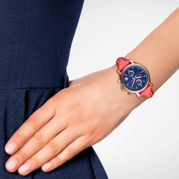 Наручные часы от популярного американского бренда Fossil - они будут замечательно смотреться как с повседневным стилем одежды, так и костюмом; браслет: кожа; корпус: сталь; цвет браслета: красный; цвет корпуса: розовое золото; цвет циферблата: синий; ширина браслета: 18MM; водонепроницаемость: 5 ATM; диаметр корпуса: 38MM