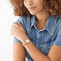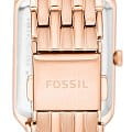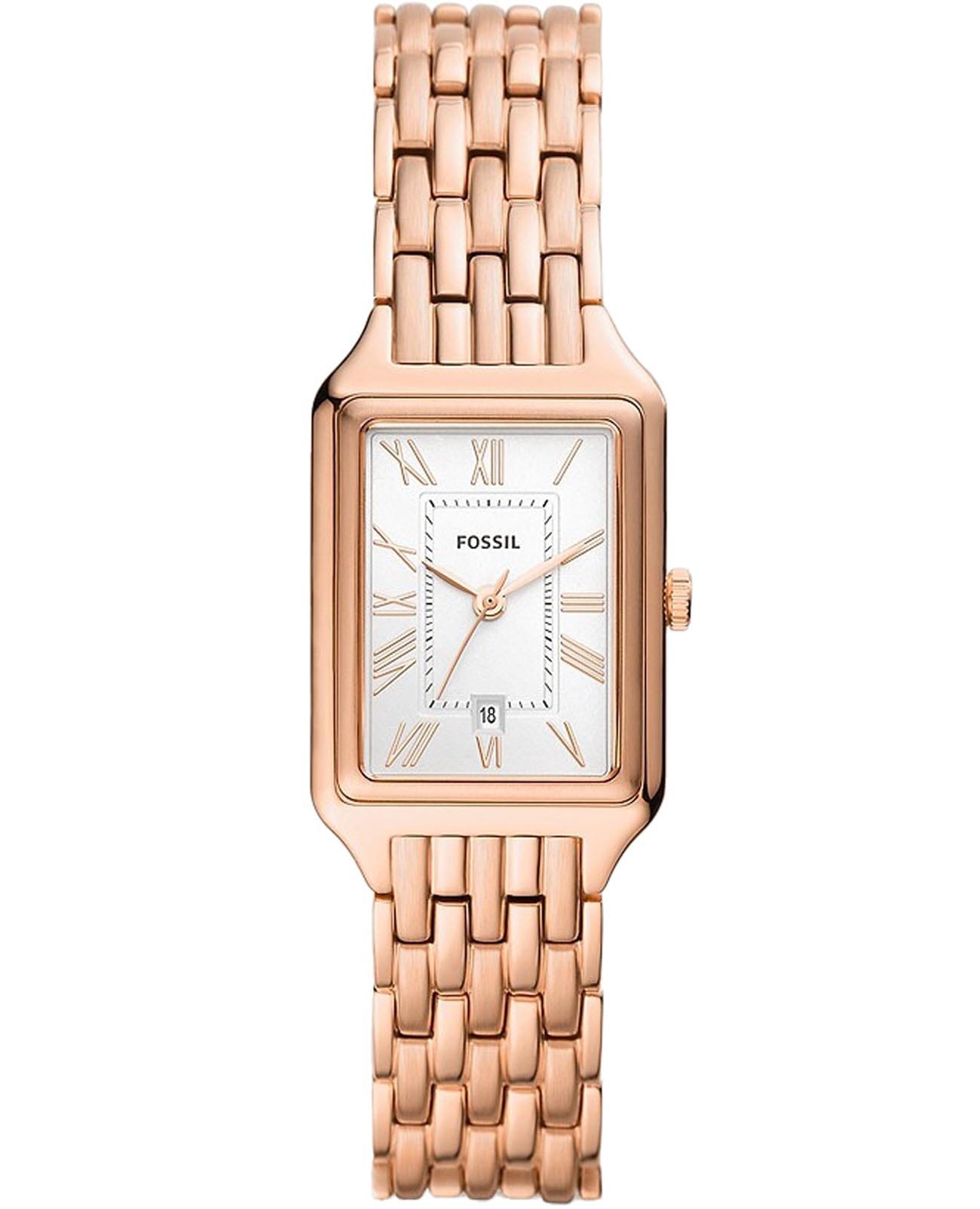 Женские американские часы с минеральным стекломМинеральное стеклоМинеральное стекло представляет собой искусственно выращенный минерал кварца. Такое стекло отличается особой устойчивостью к повреждениям и царапинам. Уступает по некоторым качествам сапфировому стеклу. Fossil Raquel ES5271, кварцевый механизм с высокой точностью. Корпус и браслет часов изготовлены из нержавеющей стали с IP-покрытиемIP-покрытиеМетод ионного напыления. Демонстрирует повышенную устойчивость к истиранию, окислению и химическим веществам. Под воздействием высокого давления и температуры около 1500°C молекулы металла надёжно соединяются с частицами корпуса часов.. Класс водозащиты: 50 метров, позволит защитить корпус от случайных брызг или капель дождя. Стальной браслет на раскладной застёжкеРаскладная застёжкаТакой тип застёжки используется только на браслетах из металла. Она никогда не раскрывается полностью, происходит разделение на 2 и более частей. Раскладывающая застёжка снизит вероятность потери часов к минимуму.. Окошко даты находится в положении 6 часов.