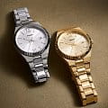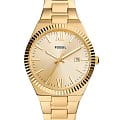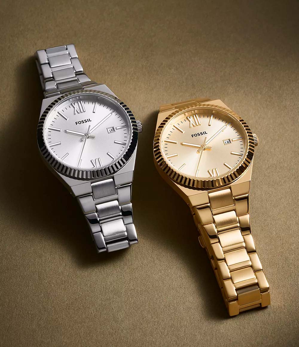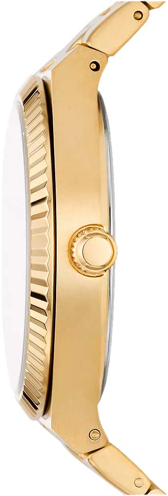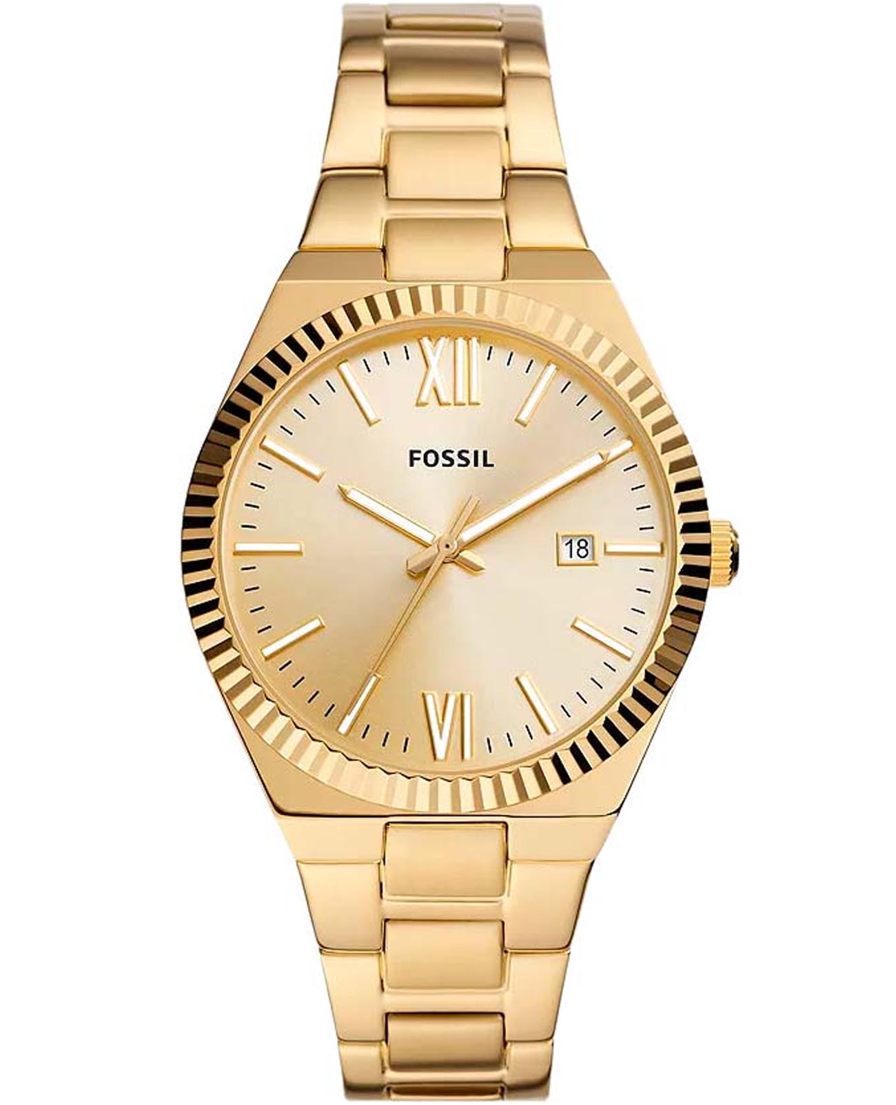 Женские американские кварцевые часы с минеральным стекломМинеральное стеклоМинеральное стекло представляет собой искусственно выращенный минерал кварца. Такое стекло отличается особой устойчивостью к повреждениям и царапинам. Уступает по некоторым качествам сапфировому стеклу. Fossil Scarlette ES5299, кварцевый механизм с высокой точностью. Класс водозащиты: 50 метров, позволит защитить корпус от случайных брызг или капель дождя. Корпус и браслет часов изготовлены из нержавеющей стали с IP-покрытиемIP-покрытиеМетод ионного напыления. Демонстрирует повышенную устойчивость к истиранию, окислению и химическим веществам. Под воздействием высокого давления и температуры около 1500°C молекулы металла надёжно соединяются с частицами корпуса часов.. Стальной браслет с раскладной застёжкойРаскладная застёжкаТакой тип застёжки используется только на браслетах из металла. Она никогда не раскрывается полностью, происходит разделение на 2 и более частей. Раскладывающая застёжка снизит вероятность потери часов к минимуму.. Окошко даты находятся в положении 3 часа. Стрелки и метки с люминесцентным покрытиемЛюминесцентное покрытиеПозволяет считывать показания времени в темноте. Производители наносят на стрелки, часовые индексы, безель или поверхность циферблата светонакопительный состав, дающий холодное свечение..