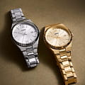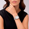 Женские американские кварцевые часы с минеральным стекломМинеральное стеклоМинеральное стекло представляет собой искусственно выращенный минерал кварца. Такое стекло отличается особой устойчивостью к повреждениям и царапинам. Уступает по некоторым качествам сапфировому стеклу. Fossil Scarlette ES5300, кварцевый механизм с высокой точностью. Класс водозащиты: 50 метров, позволит защитить корпус от случайных брызг или капель дождя. Корпус и браслет часов изготовлены из нержавеющей стали с IP-покрытиемIP-покрытиеМетод ионного напыления. Демонстрирует повышенную устойчивость к истиранию, окислению и химическим веществам. Под воздействием высокого давления и температуры около 1500°C молекулы металла надёжно соединяются с частицами корпуса часов.. Стальной браслет с раскладной застёжкойРаскладная застёжкаТакой тип застёжки используется только на браслетах из металла. Она никогда не раскрывается полностью, происходит разделение на 2 и более частей. Раскладывающая застёжка снизит вероятность потери часов к минимуму.. Окошко даты находятся в положении 3 часа. Стрелки и метки с люминесцентным покрытиемЛюминесцентное покрытиеПозволяет считывать показания времени в темноте. Производители наносят на стрелки, часовые индексы, безель или поверхность циферблата светонакопительный состав, дающий холодное свечение..
