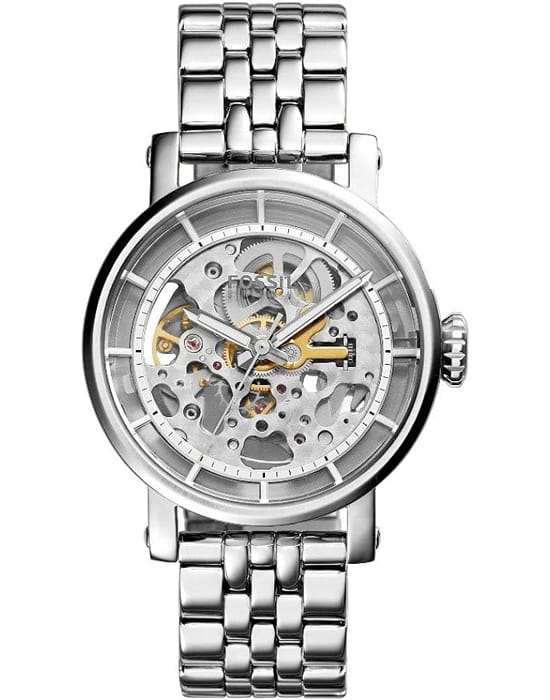 Женские механические наручные часы с автоподзаводом Fossil Original Boyfriend Automatic ME3067. Корпус часов изготовлен из нержавеющей стали. Минеральное стеклоМинеральное стеклоМинеральное стекло представляет собой искусственно выращенный минерал кварца. Такое стекло отличается особой устойчивостью к повреждениям и царапинам. Уступает по некоторым качествам сапфировому стеклу. устойчивое к появлению царапин, обладающее высокой прозрачностью. Водозащита: 50 метров, позволит защитить корпус от случайных брызг или капель дождя. Стальной браслет на раскладной застёжкеРаскладная застёжкаТакой тип застёжки используется только на браслетах из металла. Она никогда не раскрывается полностью, происходит разделение на 2 и более частей. Раскладывающая застёжка снизит вероятность потери часов к минимуму.. Стрелки с люминесцентным покрытиемЛюминесцентное покрытиеПозволяет считывать показания времени в темноте. Производители наносят на стрелки, часовые индексы, безель или поверхность циферблата светонакопительный состав, дающий холодное свечение..