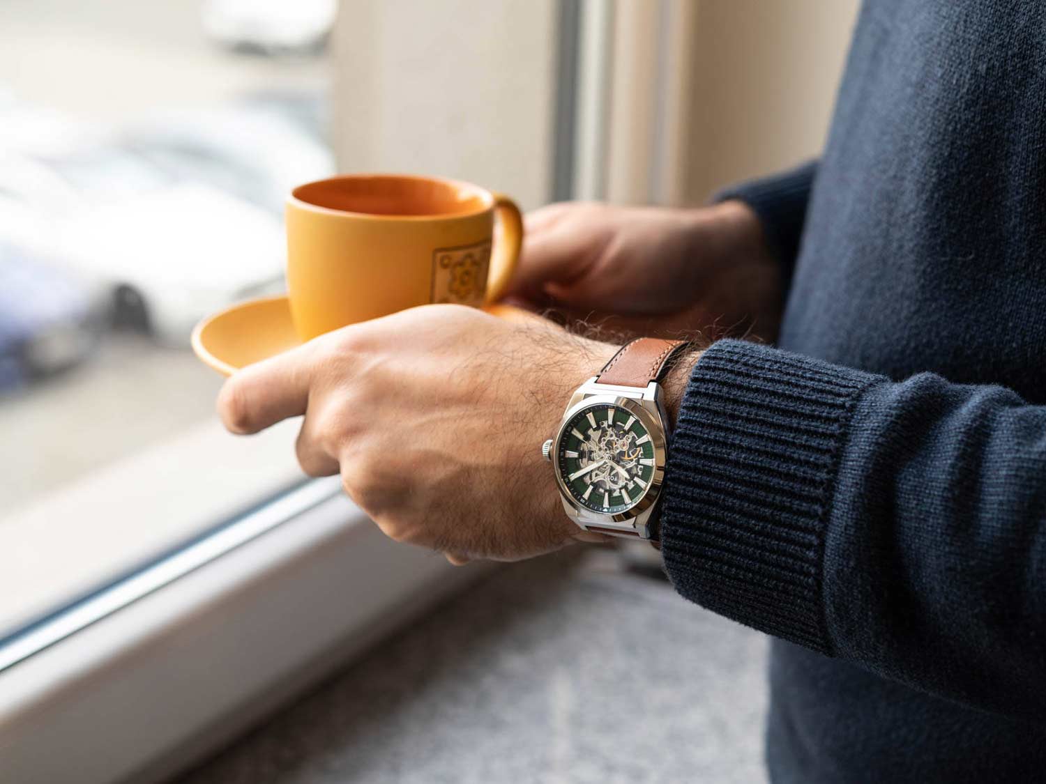 Скелетонизированные наручные часы Fossil Everett Automatic ME3261 идеально подойдут для тех, кто ценит классический стиль, дополненный современными деталями, и ищет аксессуар, способный подчеркнуть их индивидуальность и элегантность. Мужские механические с автоподзаводом часы производятся в США. Корпус из нержавеющей стали диаметром 42 мм гарантирует долговечность и придает часам стильный и современный вид. Метки в виде штрихов придают циферблату классический акцент, а рифленая заводная головка облегчает настройку времени. Стрелки и метки с люминесцентным покрытиемЛюминесцентное покрытиеПозволяет считывать показания времени в темноте. Производители наносят на стрелки, часовые индексы, безель или поверхность циферблата светонакопительный состав, дающий холодное свечение. позволяют легко считывать время даже в условиях низкой освещенности. Кожаный ремешок на стандартной застёжке обеспечивает комфортное ношение и надежную фиксацию на запястье. Водозащита уровня 50WR защищает механизм от случайных брызг, а минеральное стеклоМинеральное стеклоМинеральное стекло представляет собой искусственно выращенный минерал кварца. Такое стекло отличается особой устойчивостью к повреждениям и царапинам. Уступает по некоторым качествам сапфировому стеклу. оберегает циферблат от царапин и повреждений. Прозрачная задняя крышка.