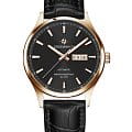 Мужские часы Greenwich Good Luck GW 054.41.31, механический механизм (автоматический калибр) с высокой точностью. Классический круглый стальной корпус с PVD-покрытиемPVDУльтратонкое покрытие наносится в технике вакуумного напыления, сочетает в себе нитрид титана особой прочности со слоем золота или оксида хрома. Несёт в себе декоративную или защитную функцию., защищенный минеральным стекломМинеральное стеклоМинеральное стекло представляет собой искусственно выращенный минерал кварца. Такое стекло отличается особой устойчивостью к повреждениям и царапинам. Уступает по некоторым качествам сапфировому стеклу.. Стрелки и метки с люминесцентным покрытиемЛюминесцентное покрытиеПозволяет считывать показания времени в темноте. Производители наносят на стрелки, часовые индексы, безель или поверхность циферблата светонакопительный состав, дающий холодное свечение.. Кожаный ремешок на стандартной застёжке. Класс водозащиты: 100 метров, позволит плавать, нырять и заниматься другими водными видами спорта. Окошко даты и дня недели находится в положении 3 часа.