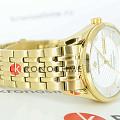 Мужские часы с минеральным стекломМинеральное стеклоМинеральное стекло представляет собой искусственно выращенный минерал кварца. Такое стекло отличается особой устойчивостью к повреждениям и царапинам. Уступает по некоторым качествам сапфировому стеклу. Greenwich Good Luck Classic GW 074.20.33, представляют собой классический вариант для повседневной носки. В центральной части циферблата — отличительная черта моделей этой серии: гильоше, объемные линии которого напоминают волны. Обратите внимание на форму пластины, где крепятся накладные риски: она сделана в форме латинской буквы G, первой буквы в названии бренда. Часы характеризуются традиционными формами, лаконичным исполнением, что делает модель элегантным дополнением к деловому костюму. Сквозь прозрачную заднюю крышку вы увидите детали механизма TMI с декорированным ротором: на нем выгравировано изображение символа английских моряков — парусника. Браслет и раскладная застёжкаРаскладная застёжкаТакой тип застёжки используется только на браслетах из металла. Она никогда не раскрывается полностью, происходит разделение на 2 и более частей. Раскладывающая застёжка снизит вероятность потери часов к минимуму. выполнены из гипоаллергенной нержавеющей стали с PVD-покрытиемPVDУльтратонкое покрытие наносится в технике вакуумного напыления, сочетает в себе нитрид титана особой прочности со слоем золота или оксида хрома. Несёт в себе декоративную или защитную функцию.. Дизайн, актуальный для любого современного образа, и надежность используемых материалов делают автоматические часы Greenwich удобным и стильным аксессуаром на каждый день. Окошко даты и дня недели находится в положении 3 часа. Класс водозащиты: 100 метров, позволит плавать, нырять и заниматься другими водными видами спорта.