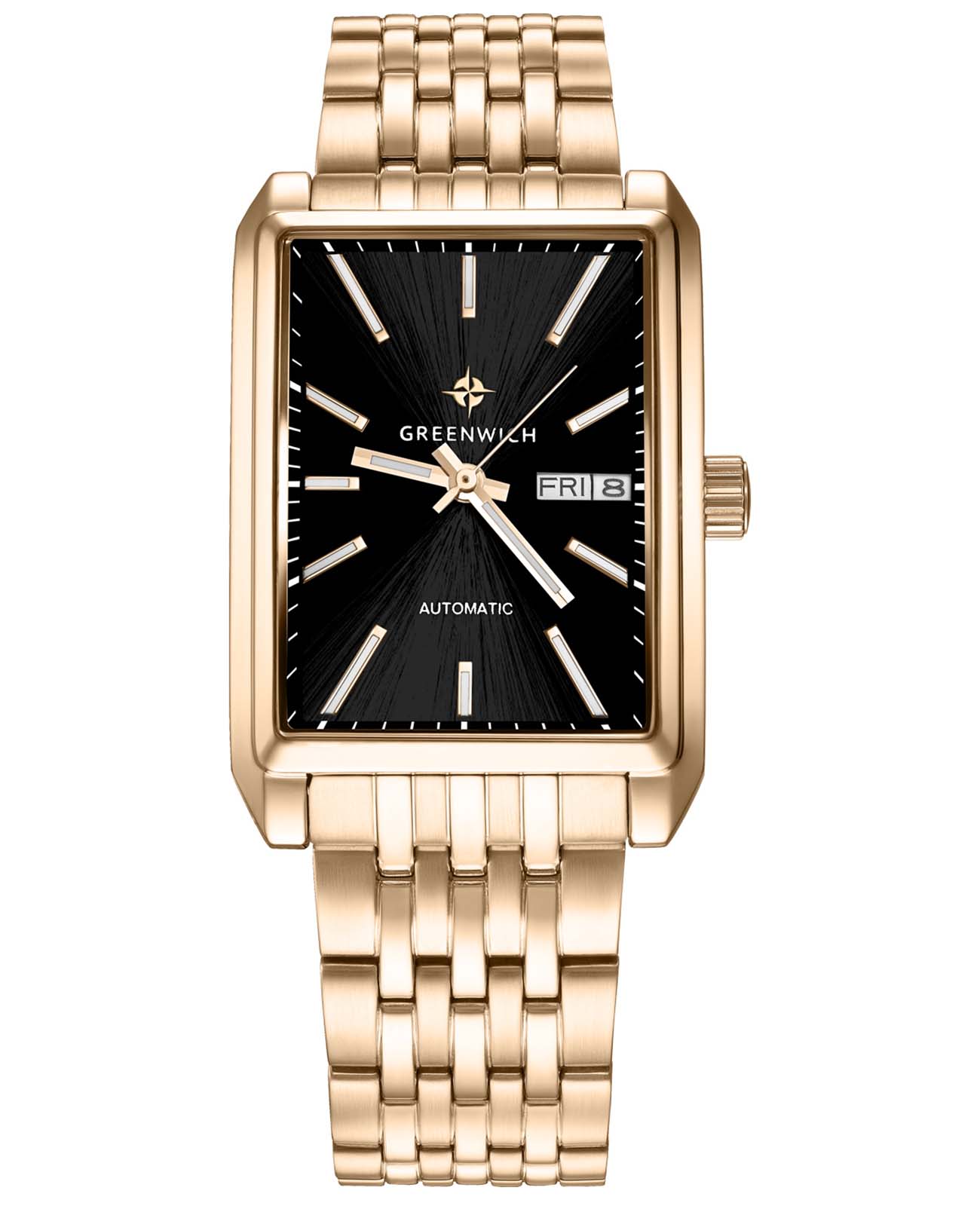 Английские механические наручные мужские часы с автоподзаводом и с минеральным стекломМинеральное стеклоМинеральное стекло представляет собой искусственно выращенный минерал кварца. Такое стекло отличается особой устойчивостью к повреждениям и царапинам. Уступает по некоторым качествам сапфировому стеклу. Greenwich Caravel GW 564.20.11, представляют собой классический вариант для повседневной носки. Корпус и браслет часов выполнен из нержавеющей стали с PVD-покрытиемPVDУльтратонкое покрытие наносится в технике вакуумного напыления, сочетает в себе нитрид титана особой прочности со слоем золота или оксида хрома. Несёт в себе декоративную или защитную функцию.. Окошко даты и дня недели находится в положении 3 часа. Стрелки с люминесцентным покрытиемЛюминесцентное покрытиеПозволяет считывать показания времени в темноте. Производители наносят на стрелки, часовые индексы, безель или поверхность циферблата светонакопительный состав, дающий холодное свечение.. 50 метров, позволит защитить корпус от случайных брызг или капель дождя.