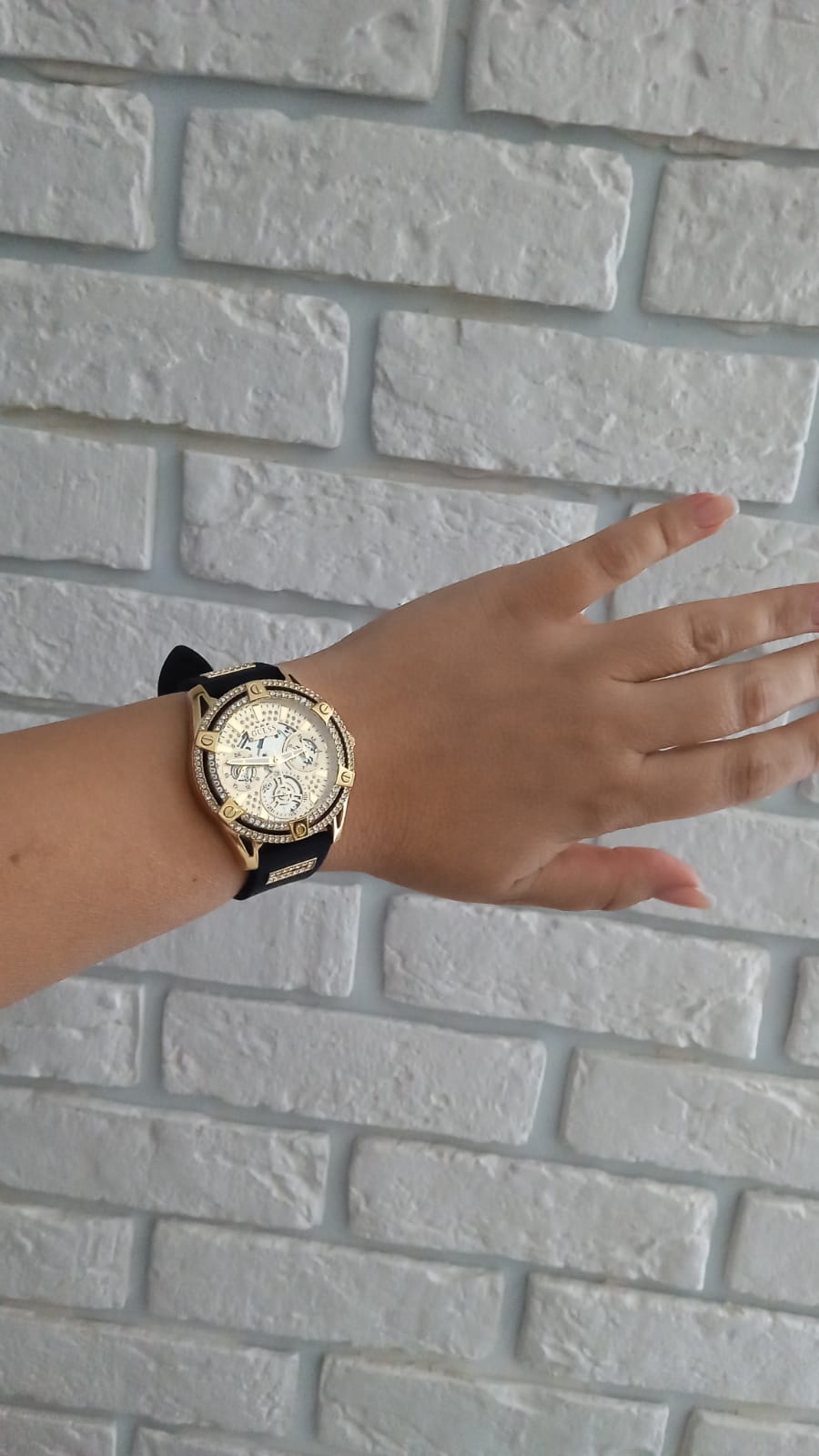 Женские наручные часы-скелетоны с минеральным стекломМинеральное стеклоМинеральное стекло представляет собой искусственно выращенный минерал кварца. Такое стекло отличается особой устойчивостью к повреждениям и царапинам. Уступает по некоторым качествам сапфировому стеклу. Guess Queen GW0536L3, кварцевый механизм с высокой точностью. Класс водозащиты: 30 метров, позволит защитить корпус от случайных брызг или капель дождя. Корпус часов изготовлен из стали с IP-покрытиемIP-покрытиеМетод ионного напыления. Демонстрирует повышенную устойчивость к истиранию, окислению и химическим веществам. Под воздействием высокого давления и температуры около 1500°C молекулы металла надёжно соединяются с частицами корпуса часов.. Силиконовый ремешок на стандартной застёжке. 24-х часовой формат времени, дата и день недели вынесены на отдельные циферблаты. Метки в виде штрихов. Рифленая заводная головка с защитой. Циферблат и ремешок украшены кристаллами.