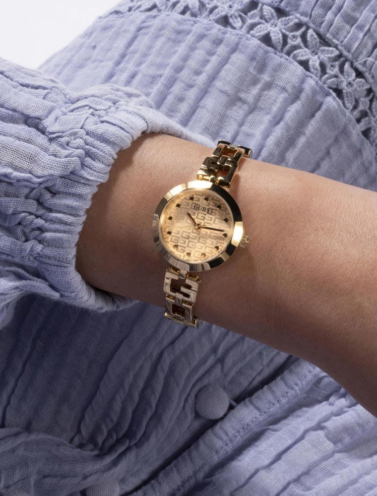 Женские наручные часы Guess Dress Steel GW0549L2 с минеральным стекломМинеральное стеклоМинеральное стекло представляет собой искусственно выращенный минерал кварца. Такое стекло отличается особой устойчивостью к повреждениям и царапинам. Уступает по некоторым качествам сапфировому стеклу., кварцевый механизм с высокой точностью. Класс водозащиты: 30 метров, позволит защитить корпус от случайных брызг или капель дождя. Корпус часов изготовлен из стали с IP-покрытиемIP-покрытиеМетод ионного напыления. Демонстрирует повышенную устойчивость к истиранию, окислению и химическим веществам. Под воздействием высокого давления и температуры около 1500°C молекулы металла надёжно соединяются с частицами корпуса часов..
