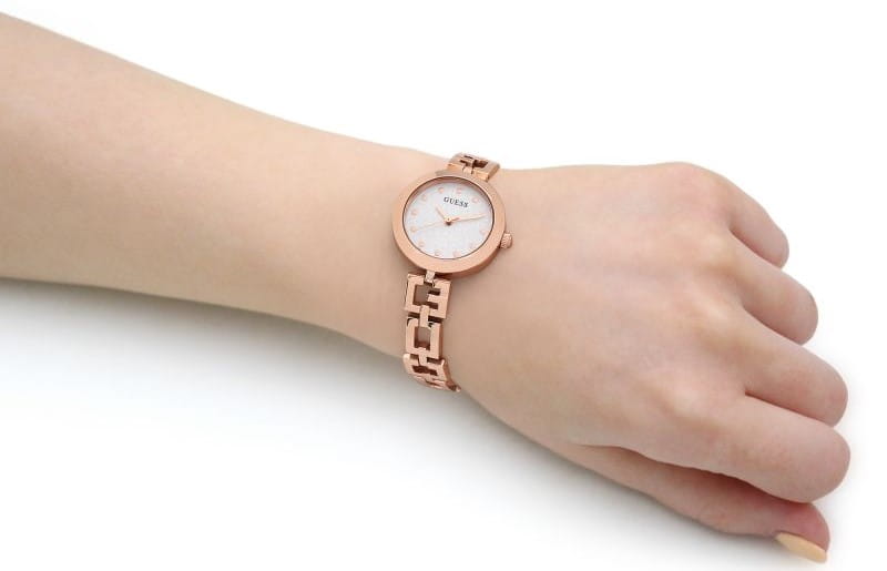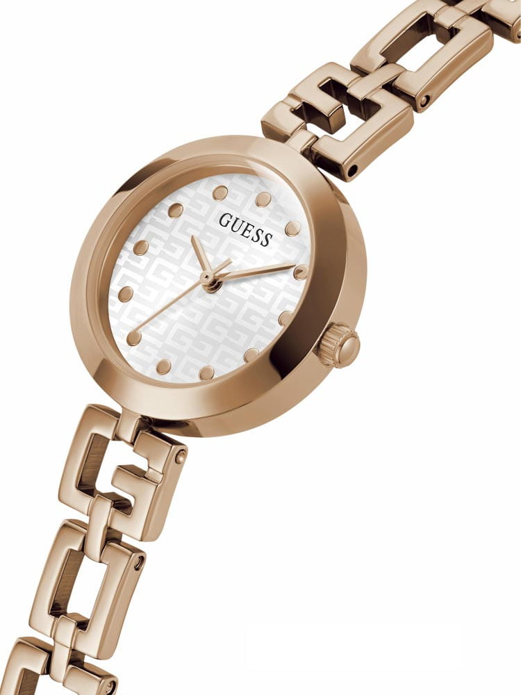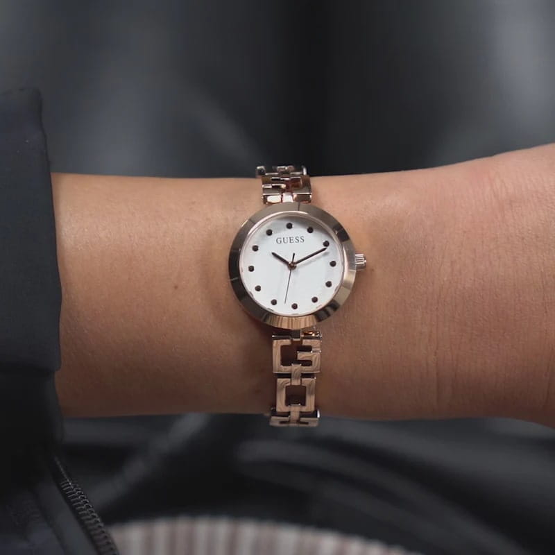 Женские наручные часы с минеральным стекломМинеральное стеклоМинеральное стекло представляет собой искусственно выращенный минерал кварца. Такое стекло отличается особой устойчивостью к повреждениям и царапинам. Уступает по некоторым качествам сапфировому стеклу. Guess Dress Steel GW0549L3 с минеральным стекломМинеральное стеклоМинеральное стекло представляет собой искусственно выращенный минерал кварца. Такое стекло отличается особой устойчивостью к повреждениям и царапинам. Уступает по некоторым качествам сапфировому стеклу., кварцевый механизм с высокой точностью. Класс водозащиты: 30 метров, позволит защитить корпус от случайных брызг или капель дождя. Корпус часов изготовлен из стали с IP-покрытиемIP-покрытиеМетод ионного напыления. Демонстрирует повышенную устойчивость к истиранию, окислению и химическим веществам. Под воздействием высокого давления и температуры около 1500°C молекулы металла надёжно соединяются с частицами корпуса часов.. Стальной браслет на ювелирной застёжке с IP-покрытиемIP-покрытиеМетод ионного напыления. Демонстрирует повышенную устойчивость к истиранию, окислению и химическим веществам. Под воздействием высокого давления и температуры около 1500°C молекулы металла надёжно соединяются с частицами корпуса часов..