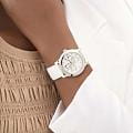Эти изысканные часы Guess GW0860L3 созданы для уверенных в себе и успешных женщин, стремящихся подчеркнуть свою элегантность и стиль. Часы оснащены надежным кварцевым механизмом, который обеспечивает точность и долговечность. Корпус часов из нержавеющей стали, а безельБезельВнешний ободок, закрепляющий стекло. В спортивных часах так называется поворотное кольцо с делениями на циферблате, выполняет роль таймера – замеряет отрезки времени на шкале. Неподвижный безель – элемент декора. Однонаправленно вращающийся безель на дайверских часах позволяет фиксировать моменты погружения и выныривания на поверхность. украшен кристаллами, придающими модели особый блеск и роскошь. Серебристый циферблат с фактурной поверхностью и метками в виде точек добавляет индивидуальность и изящество. Люминесцентное покрытиеЛюминесцентное покрытиеПозволяет считывать показания времени в темноте. Производители наносят на стрелки, часовые индексы, безель или поверхность циферблата светонакопительный состав, дающий холодное свечение. на стрелках обеспечивает отличную видимость в темноте. Рифленая заводная головка с защитой обеспечивает удобное управление. Силиконовый черный ремешок с классической застежкой гарантирует комфортное ношение и надежную фиксацию на запястье. Часы обладают водозащитой 30WR, что делает их устойчивыми к случайным брызгам. Минеральное стеклоМинеральное стеклоМинеральное стекло представляет собой искусственно выращенный минерал кварца. Такое стекло отличается особой устойчивостью к повреждениям и царапинам. Уступает по некоторым качествам сапфировому стеклу. защищает циферблат от царапин и других повреждений. Эта модель станет идеальным аксессуаром для повседневного использования и особых мероприятий, подчеркивая вашу индивидуальность и неповторимость в любой ситуации.