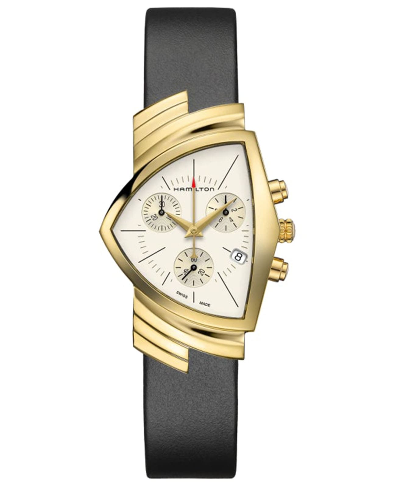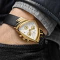 Мужские швейцарские механические часы с автоподзаводом Hamilton Ventura Chrono Quartz H24422751, кварцевый механизм с высокой точностью. Сапфировое стекло устойчивое к появлению царапин, обладающее высокой прозрачностью. Класс водозащиты: 50 метров, позволит защитить корпус от случайных брызг или капель дождя. Корпус часов изготовлен из стали, золотистого цвета.