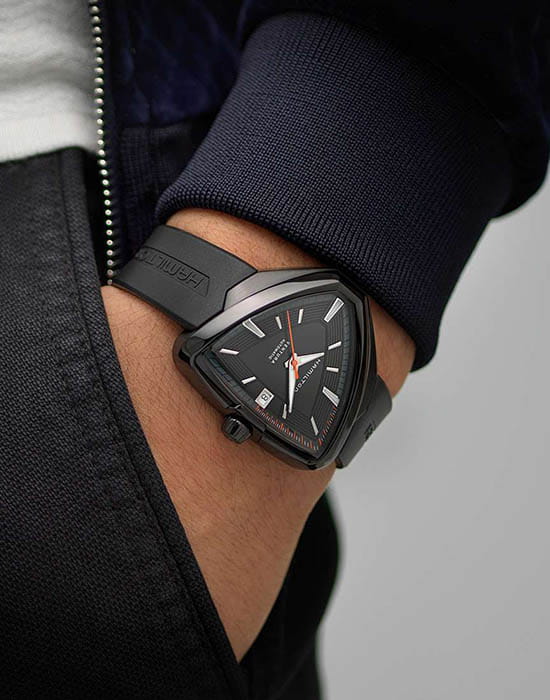 Мужские швейцарские механические часы с автоподзаводом Hamilton Ventura Elvis80 Auto H24585331, автоматический механизм с высокой точностью. Сапфировое стеклоСапфировое стеклоПрочный и надёжный материал из кристалла сапфира синтетического происхождения, характеризующийся особой твёрдостью и устойчивостью к царапинам и повреждениям. устойчивое к появлению царапин, обладающее высокой прозрачностью. Класс водозащиты: 50 метров, позволит защитить корпус от случайных брызг или капель дождя. Корпус часов изготовлен из стали с PVD-покрытиемPVDУльтратонкое покрытие наносится в технике вакуумного напыления, сочетает в себе нитрид титана особой прочности со слоем золота или оксида хрома. Несёт в себе декоративную или защитную функцию..