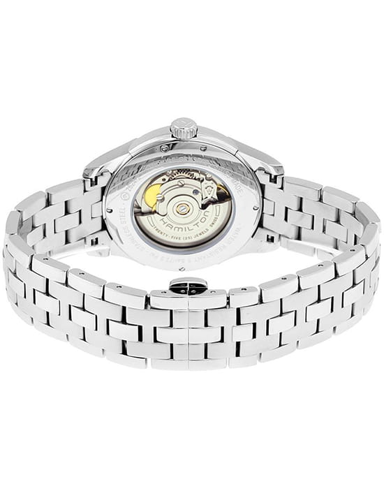 Часы оснащены автоматическим механизмом калибра H-10 с запасом хода до 80 часов, обеспечивающим стабильную и точную работу. Браслет из нержавеющей стали на застёжке-бабочке с кнопкамиЗастёжка "бабочка"Такой вид застёжки дополняется предохранителями, помогающими избежать случайного раскрытия браслета. Обладают изящным исполнением. гарантирует комфортное прилегание к запястью.