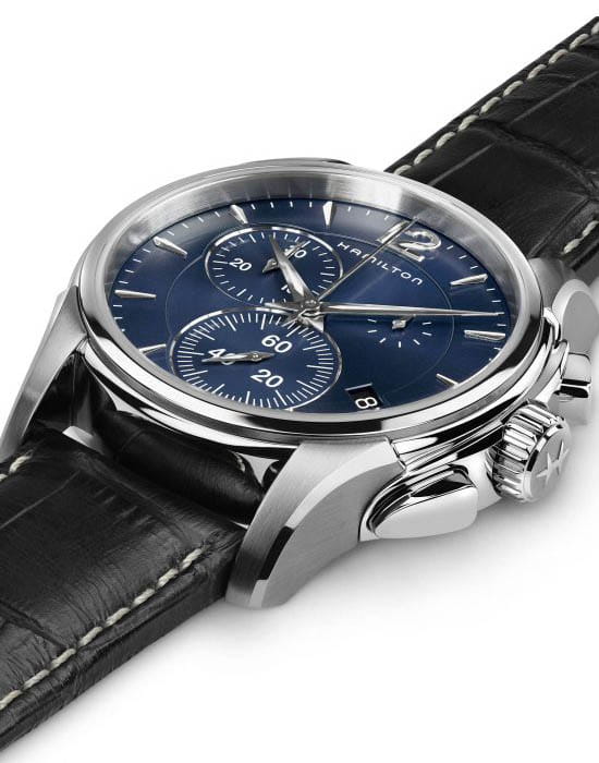 Мужские швейцарские часы-хронографХронографФункция позволяет измерять отрезки времени с особой точностью: часы, минуты, секунды. Верным признаком хронографа является наличие на циферблате 3 дополнительных окошек-счётчиков. Hamilton Jazzmaster Chrono Quartz H32612741. Кварцевый механизм с высокой точностью. Сапфировое стеклоСапфировое стеклоПрочный и надёжный материал из кристалла сапфира синтетического происхождения, характеризующийся особой твёрдостью и устойчивостью к царапинам и повреждениям. устойчивое к появлению царапин, обладающее высокой прозрачностью. Класс водозащиты: 100 метров, позволит плавать, нырять и заниматься другими водными видами спорта. Корпус часов изготовлен из стали, цвета.