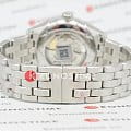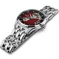 Мужские наручные часы Hamilton Jazzmaster Open Heart Auto H32675170 сочетают в себе элегантный дизайн и современные технологии. Модель обладает круглым корпусом диаметром 40 мм, изготовленным из нержавеющей стали, что обеспечивает высокую устойчивость к внешним воздействиям. Часы оснащены автоматическим механизмом калибра H-10 с запасом хода до 80 часов и спиралью баланса из сплава Nivachron™Nivachron™Специально разработанный инновационный сплав Nivachron™ повышает устойчивость часов к воздействию магнитных полей., что гарантирует точность хода даже в условиях магнитных полей. Циферблат дымчато-бордового цвета украшен открытым сердцем, раскрывающим тонкую красоту механизма. Для защиты используется сапфировое стеклоСапфировое стеклоПрочный и надёжный материал из кристалла сапфира синтетического происхождения, характеризующийся особой твёрдостью и устойчивостью к царапинам и повреждениям., известное своей прочностью и устойчивостью к царапинам. Браслет выполнен из нержавеющей стали с раскладной застежкойРаскладной замокДанный вариант застежки используется только на часах с металлическим браслетом. Отличительная особенность такого крепления в том, что длина браслета становится универсальной и вы можете самостоятельно отрегулировать нужный вам размер – застежка просто двигается по браслету часов., гарантирующей комфортное ношение и безопасность. Водонепроницаемость часов составляет 5 атмосфер (50 метров), что позволяет использовать их при мытье рук и в условиях легких брызг.