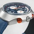 Часы Hamilton American Classic Chrono-Matic 50 (модель H51606640) — лимитированная серия из 150 экземпляров, вдохновленная гоночным духом 1970-х годов и переосмысляющая легендарную модель Chrono-Matic E. Выразительный 48-мм корпус из нержавеющей стали сочетается с контрастной сине-оранжевой палитрой циферблата. Модель оснащена автоматическим калибром H-31 с 60-часовым запасом хода. Ключевые функции включают хронографХронографФункция позволяет измерять отрезки времени с особой точностью: часы, минуты, секунды. Верным признаком хронографа является наличие на циферблате 3 дополнительных окошек-счётчиков., тахиметрическую шкалу на безелеБезельВнешний ободок, закрепляющий стекло. В спортивных часах так называется поворотное кольцо с делениями на циферблате, выполняет роль таймера – замеряет отрезки времени на шкале. Неподвижный безель – элемент декора. Однонаправленно вращающийся безель на дайверских часах позволяет фиксировать моменты погружения и выныривания на поверхность. и окошко даты. Ударопрочное сапфировое стеклоСапфировое стеклоПрочный и надёжный материал из кристалла сапфира синтетического происхождения, характеризующийся особой твёрдостью и устойчивостью к царапинам и повреждениям. с антибликовым покрытиемАнтибликовое покрытиеСлой оксида металла в 0,13-0,3 микрон, благодаря которому стекло часов не бликует и не отражает свет. Антибликовое покрытие уменьшает отражение света в 10 раз, обеспечивая отличную читаемость показателей циферблата. гарантирует защиту от царапин, а спираль баланса Nivachron™Nivachron™Специально разработанный инновационный сплав Nivachron™ повышает устойчивость часов к воздействию магнитных полей. обеспечивает устойчивость к магнитным полям и перепадам температур. Люминесцентное покрытиеЛюминесцентное покрытиеПозволяет считывать показания времени в темноте. Производители наносят на стрелки, часовые индексы, безель или поверхность циферблата светонакопительный состав, дающий холодное свечение. Super-LumiNova на стрелках и индексах обеспечивает видимость в темноте. Водонепроницаемость 10 бар (100 метров) позволяет использовать часы при плавании. Ремешок из перфорированной кожи коровы в двухцветном сине-оранжевом исполнении дополнен классической застёжкой шириной 20 мм.