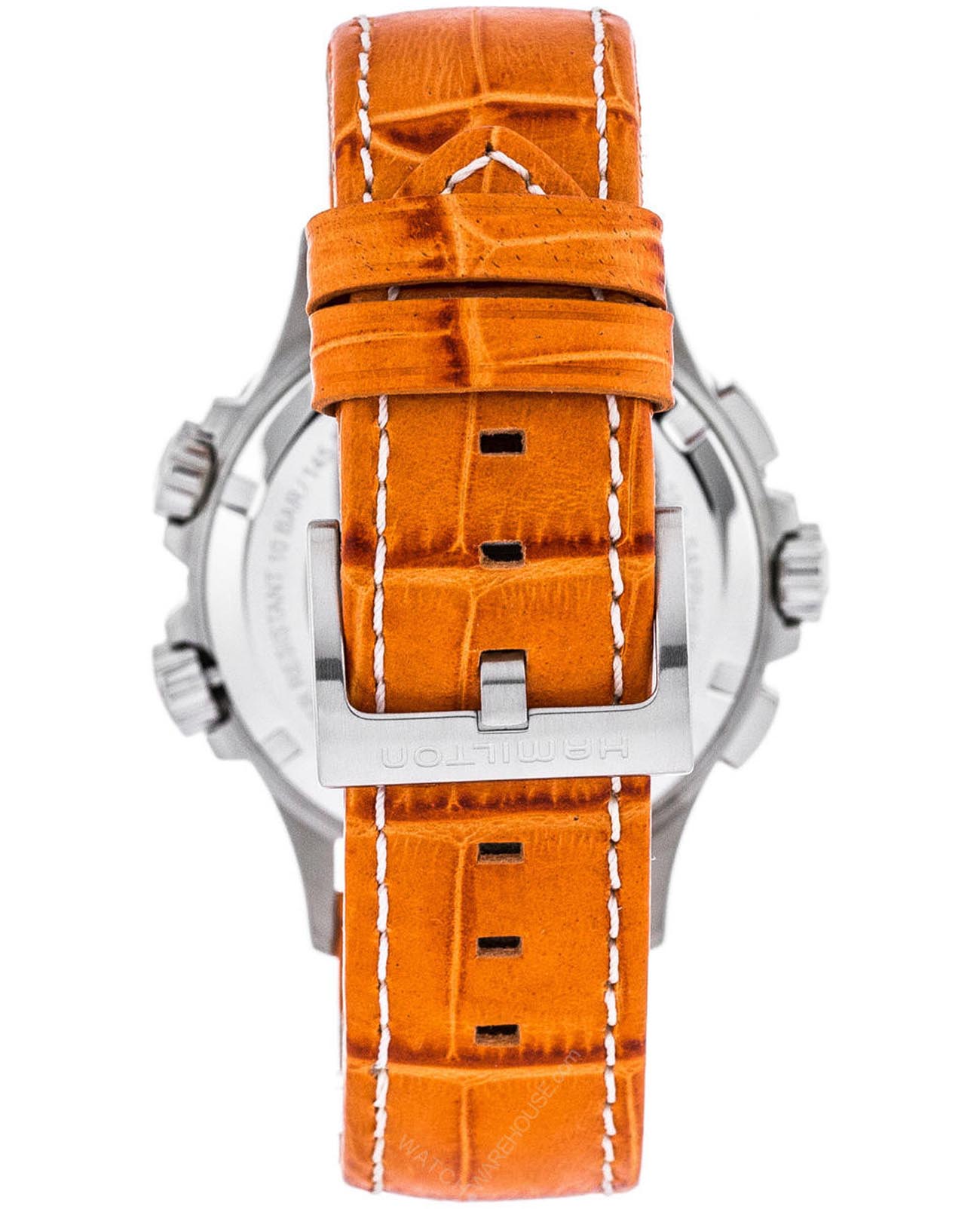 Мужские часы-хронографХронографФункция позволяет измерять отрезки времени с особой точностью: часы, минуты, секунды. Верным признаком хронографа является наличие на циферблате 3 дополнительных окошек-счётчиков. Hamilton Khaki Aviation ETO Chrono Quartz H77612933 с надёжным кварцевым механизмом. Корпус часов изготовлен из нержавеющей стали. Кожаный ремешок на стандартной застёжке. Сапфировое стеклоСапфировое стеклоПрочный и надёжный материал из кристалла сапфира синтетического происхождения, характеризующийся особой твёрдостью и устойчивостью к царапинам и повреждениям. с антибликовым покрытием. Второй часовой поясВторой часовой поясФункция, позволяющая отображать время двух часовых поясов одновременно., вычисление поправки на ветер, окошко даты находится в положении 6 часов. Стрелки и метки с люминесцентным покрытиемЛюминесцентное покрытиеПозволяет считывать показания времени в темноте. Производители наносят на стрелки, часовые индексы, безель или поверхность циферблата светонакопительный состав, дающий холодное свечение.. Уровень влагозащиты: 100 метров, позволит плавать, нырять и заниматься другими водными видами спорта.