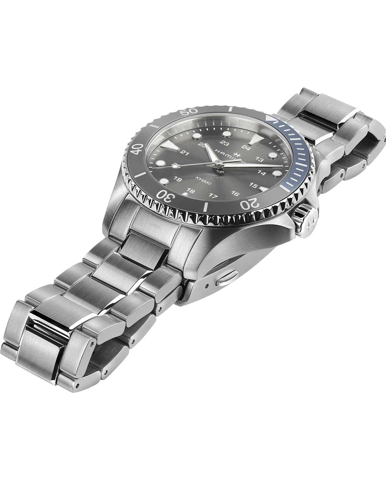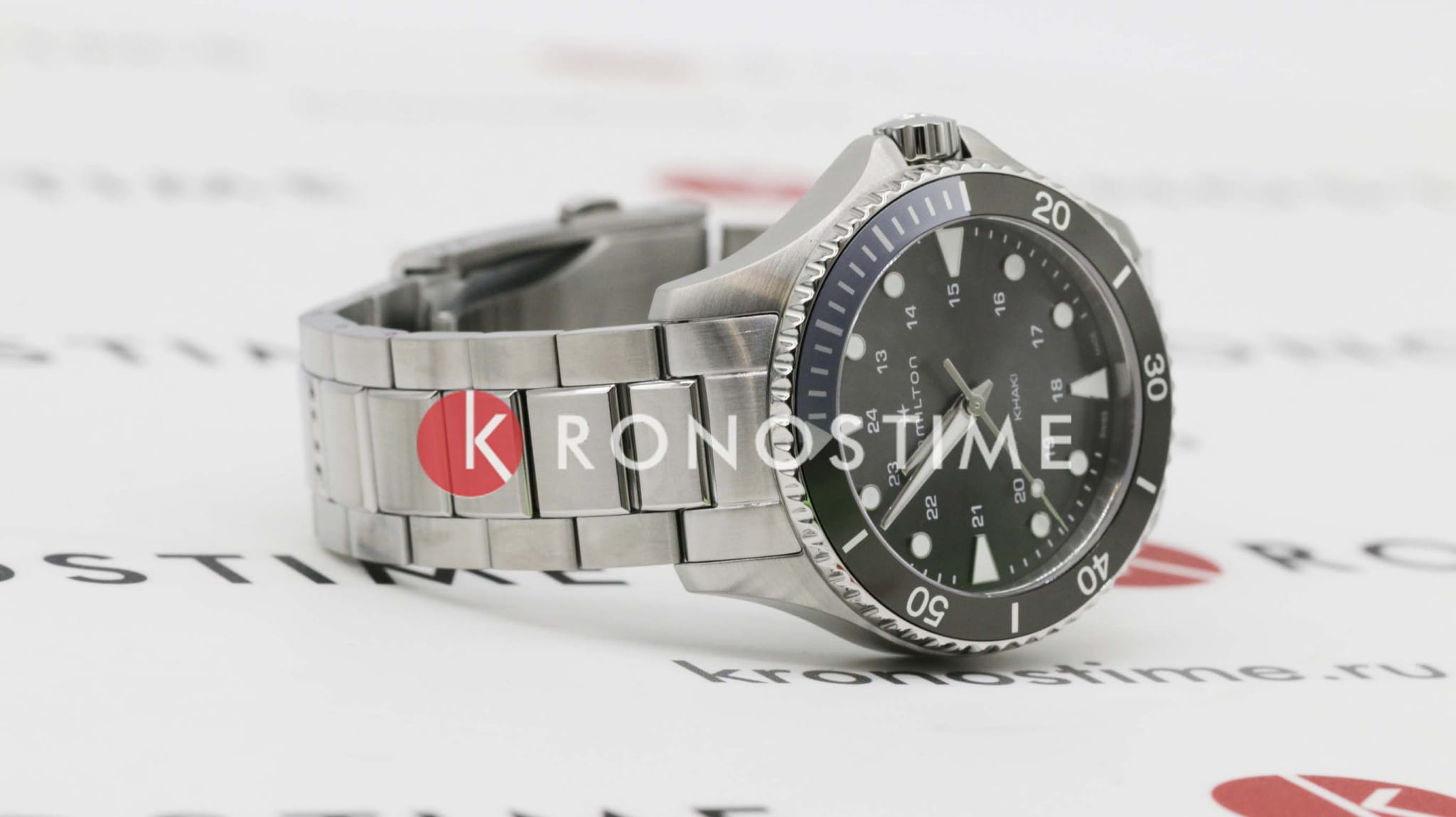 Мужские швейцарские часы Hamilton Khaki Navy Scuba Quartz H82211181, кварцевый механизм с высокой точностью. Сапфировое стеклоСапфировое стеклоПрочный и надёжный материал из кристалла сапфира синтетического происхождения, характеризующийся особой твёрдостью и устойчивостью к царапинам и повреждениям. устойчивое к появлению царапин, обладающее высокой прозрачностью. Класс водозащиты: 100 метров, позволит плавать, нырять и заниматься другими водными видами спорта. Корпус часов изготовлен из стали. Стальной браслет на раскладной застёжкеРаскладная застёжкаТакой тип застёжки используется только на браслетах из металла. Она никогда не раскрывается полностью, происходит разделение на 2 и более частей. Раскладывающая застёжка снизит вероятность потери часов к минимуму.. Стрелки и метки с люминесцентным покрытиемЛюминесцентное покрытиеПозволяет считывать показания времени в темноте. Производители наносят на стрелки, часовые индексы, безель или поверхность циферблата светонакопительный состав, дающий холодное свечение..