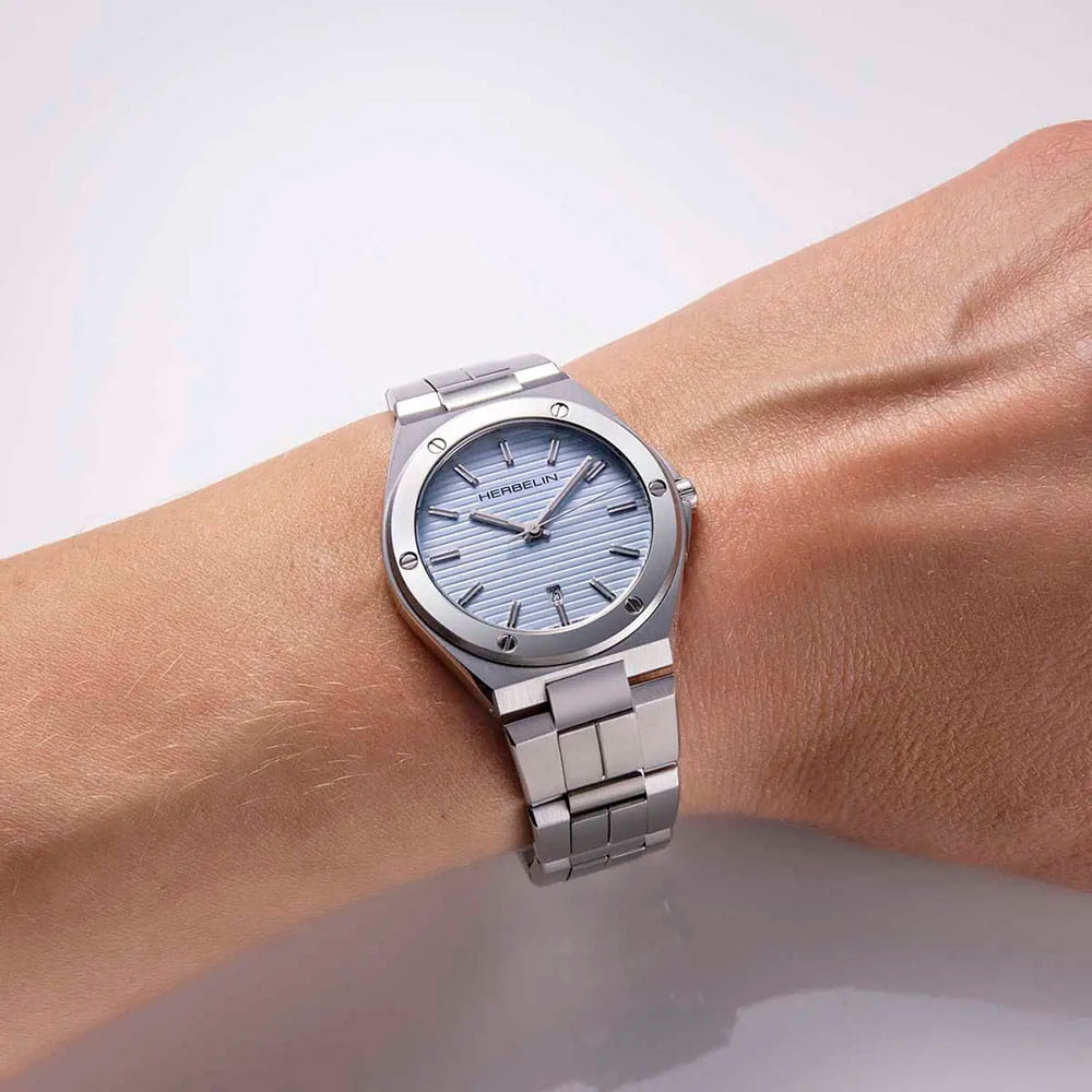 Женские кварцевые часы Herbelin Cap Camarat 14545B25 – отражающий идеальное сочетание современного дизайна, надёжности и функциональности. Элегантный облик станет превосходным завершением образа, наделив его индивидуальным характером. Корпус из нержавеющей стали серебристого цвета, диаметром 33 мм и толщиной 7.1 мм, идеально сбалансирован и элегантен. Сапфировое стеклоСапфировое стеклоПрочный и надёжный материал из кристалла сапфира синтетического происхождения, характеризующийся особой твёрдостью и устойчивостью к царапинам и повреждениям. защищает циферблат от царапин и устойчивое к механическим повреждениям. БезельБезельВнешний ободок, закрепляющий стекло. В спортивных часах так называется поворотное кольцо с делениями на циферблате, выполняет роль таймера – замеряет отрезки времени на шкале. Неподвижный безель – элемент декора. Однонаправленно вращающийся безель на дайверских часах позволяет фиксировать моменты погружения и выныривания на поверхность. украшен винтами, заводная головка с защитой. Окошко даты находится в положении 6 часов. Стрелки и метки с люминесцентным покрытиемЛюминесцентное покрытиеПозволяет считывать показания времени в темноте. Производители наносят на стрелки, часовые индексы, безель или поверхность циферблата светонакопительный состав, дающий холодное свечение.. Стальной браслет на застёжке-бабочке с кнопкамиЗастёжка "бабочка"Такой вид застёжки дополняется предохранителями, помогающими избежать случайного раскрытия браслета. Обладают изящным исполнением. обеспечивает комфортное ношение. Водозащита 100 метров позволит плавать, нырять и заниматься другими водными видами спорта. Эта модель – отличный выбор для тех, кто ищет сочетание стиля, качества и функциональности. Часы станут не только полезным аксессуаром, но и выразительным элементом вашего имиджа.