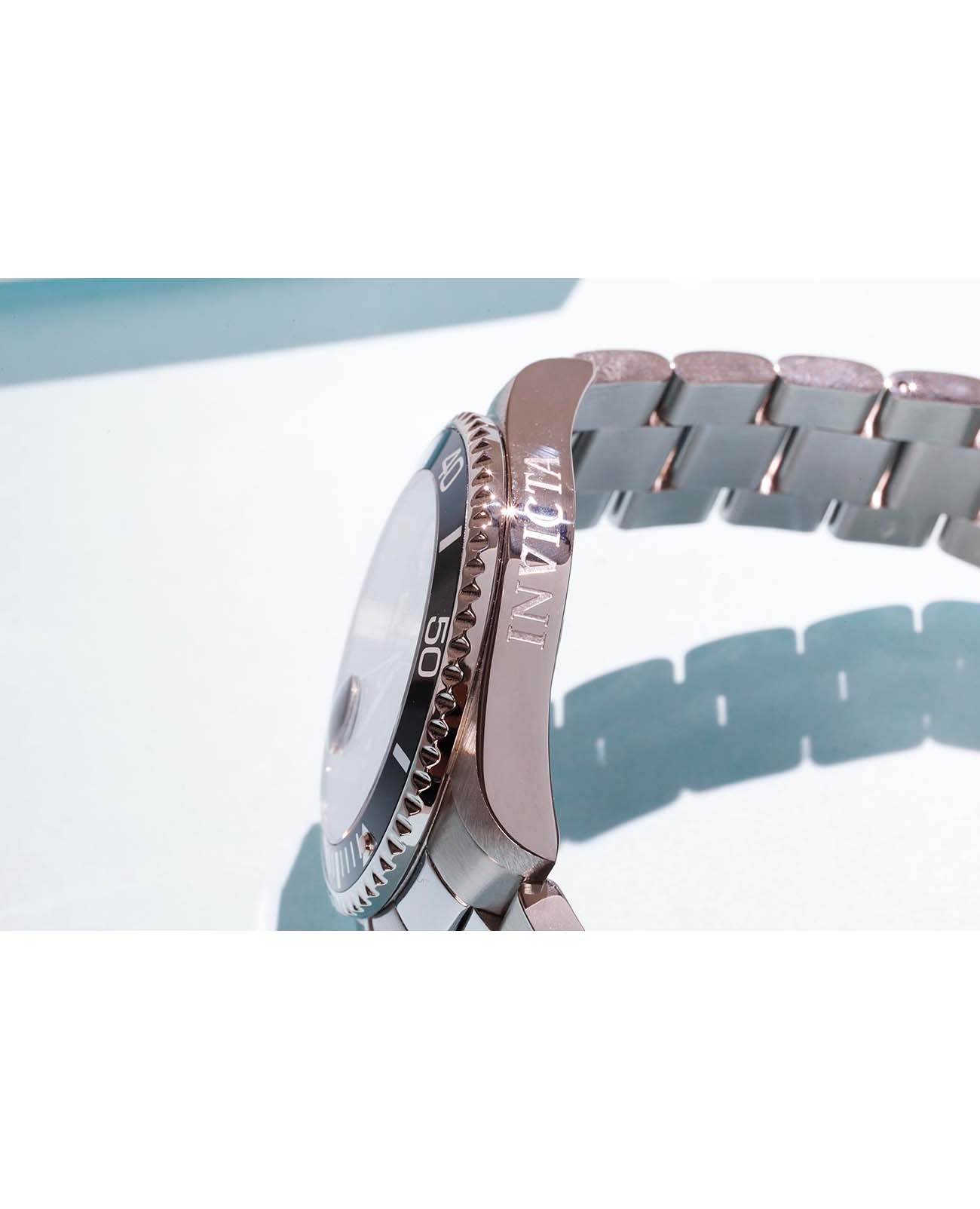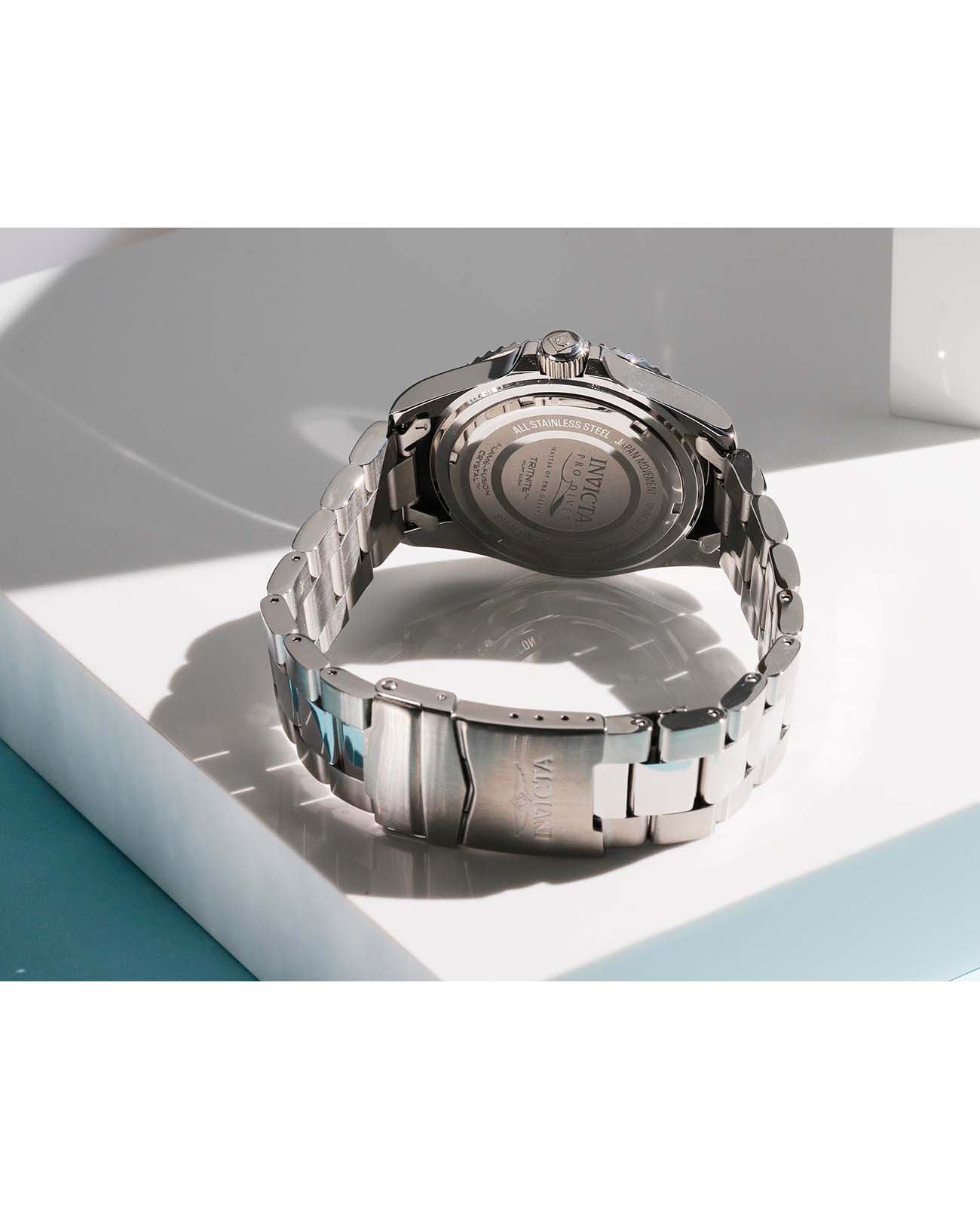 Мужские наручные часы Invicta IN30956 из коллекции Pro Diver сочетают в себе классический дизайн и функциональность для активного образа жизни. БезельБезельВнешний ободок, закрепляющий стекло. В спортивных часах так называется поворотное кольцо с делениями на циферблате, выполняет роль таймера – замеряет отрезки времени на шкале. Неподвижный безель – элемент декора. Однонаправленно вращающийся безель на дайверских часах позволяет фиксировать моменты погружения и выныривания на поверхность. с IP-покрытиемIP-покрытиеМетод ионного напыления. Демонстрирует повышенную устойчивость к истиранию, окислению и химическим веществам. Под воздействием высокого давления и температуры около 1500°C молекулы металла надёжно соединяются с частицами корпуса часов., что придает ей современный вид и защищает от внешних воздействий. Браслет выполнен из нержавеющей стали оснащен раскладной застежкойРаскладная застёжкаТакой тип застёжки используется только на браслетах из металла. Она никогда не раскрывается полностью, происходит разделение на 2 и более частей. Раскладывающая застёжка снизит вероятность потери часов к минимуму. с системой блокировки, обеспечивающей комфортное ношение. Циферблат дополнен люминесцентными стрелками и метками Tritnite, гарантирующими отличную видимость в темноте. Для защиты используется минеральное стеклоМинеральное стеклоМинеральное стекло представляет собой искусственно выращенный минерал кварца. Такое стекло отличается особой устойчивостью к повреждениям и царапинам. Уступает по некоторым качествам сапфировому стеклу., которое обеспечивает прочность и устойчивость к царапинам . Часы работают на кварцевом механизме, что гарантирует точное время без необходимости подзаводки . На циферблате присутствует окно даты с увеличительным стеклом, добавляющим удобства при использовании. Водонепроницаемость модели достигает 100WR, что позволяет использовать часы во время плавания и других водных видов спорта .