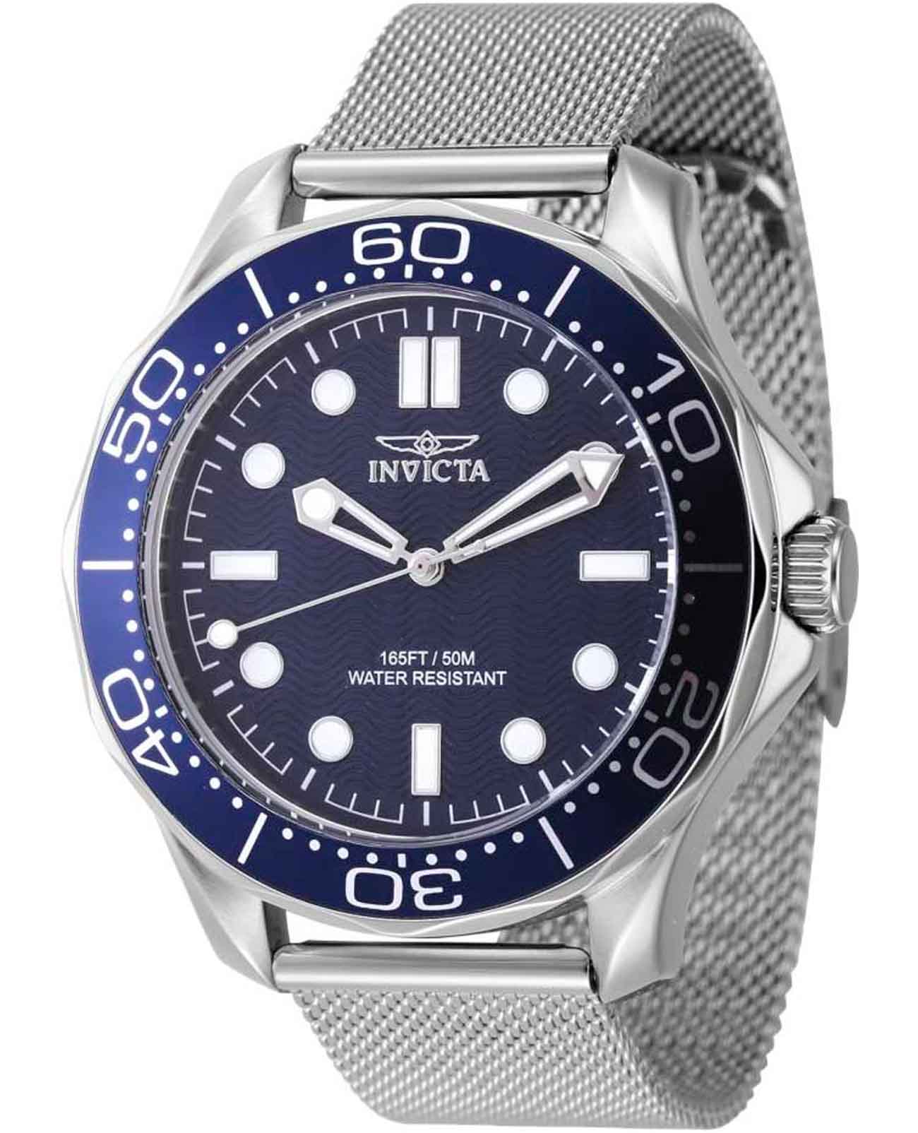 Мужские наручные часы Invicta Specialty IN45981 сочетают в себе классический дизайн и надежность современных технологий. Модель обладает круглым корпусом диаметром 44 мм, изготовленным из нержавеющей стали, что обеспечивает высокую устойчивость к внешним воздействиям . БезельБезельВнешний ободок, закрепляющий стекло. В спортивных часах так называется поворотное кольцо с делениями на циферблате, выполняет роль таймера – замеряет отрезки времени на шкале. Неподвижный безель – элемент декора. Однонаправленно вращающийся безель на дайверских часах позволяет фиксировать моменты погружения и выныривания на поверхность. с IP-покрытиемIP-покрытиеМетод ионного напыления. Демонстрирует повышенную устойчивость к истиранию, окислению и химическим веществам. Под воздействием высокого давления и температуры около 1500°C молекулы металла надёжно соединяются с частицами корпуса часов.. Браслет миланского плетения из того же матеариала на раскладном замкеРаскладной замокДанный вариант застежки используется только на часах с металлическим браслетом. Отличительная особенность такого крепления в том, что длина браслета становится универсальной и вы можете самостоятельно отрегулировать нужный вам размер – застежка просто двигается по браслету часов.. Синий циферблат дополнен светящимися стрелками с люминесцентным покрытиемЛюминесцентное покрытиеПозволяет считывать показания времени в темноте. Производители наносят на стрелки, часовые индексы, безель или поверхность циферблата светонакопительный состав, дающий холодное свечение. Tritnite, которые обеспечивают отличную видимость в темноте . Для защиты используется минеральное стеклоМинеральное стеклоМинеральное стекло представляет собой искусственно выращенный минерал кварца. Такое стекло отличается особой устойчивостью к повреждениям и царапинам. Уступает по некоторым качествам сапфировому стеклу. с антибликовым покрытием, обеспечивающее прочную защиту от царапин и бликов. Часы работают на кварцевом механизме, что гарантирует точное время без необходимости подзаводки. Водонепроницаемость часов достигает 50 метров (5 атмосфер), что позволяет использовать их во время плавания и других водных видов спорта, однако не рекомендуется для глубоководного дайвинга . Стильный дизайн модели, который делает ее универсальным аксессуаром как для повседневной носки, так и для особых случаев.